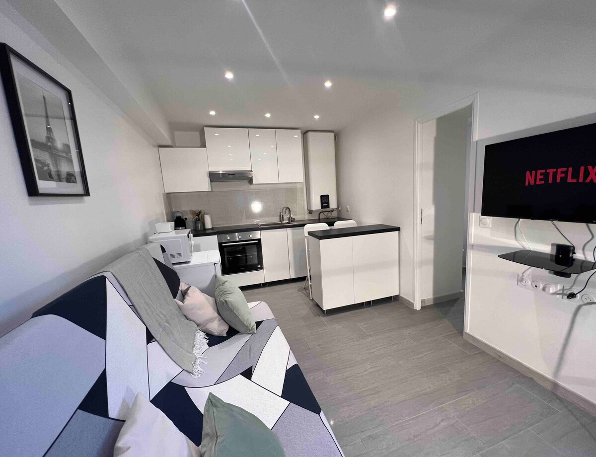 Вітаємо, шановні гості! Цей новий F2 буде радий прийняти вас. Розташоване в невеликому співвласнику в центрі Епоне. Комфорт: пральна машина/ сушильна машина, телевізор, WI-FI, кавоварка. Спальні місця: ліжко 160 см у спальні та розкладний диван у вітальні. Громадська парковка поблизу. Пекарня та магазини неподалік. Gare d 'Epône знаходиться в 10 хвилинах ходьби, в 3 хвилинах їзди на автомобілі. Доступ до A13 в 5 хвилинах ходьби. Париж 30-40 хв, Версаль - 25 хв, Дісней - 1 год.