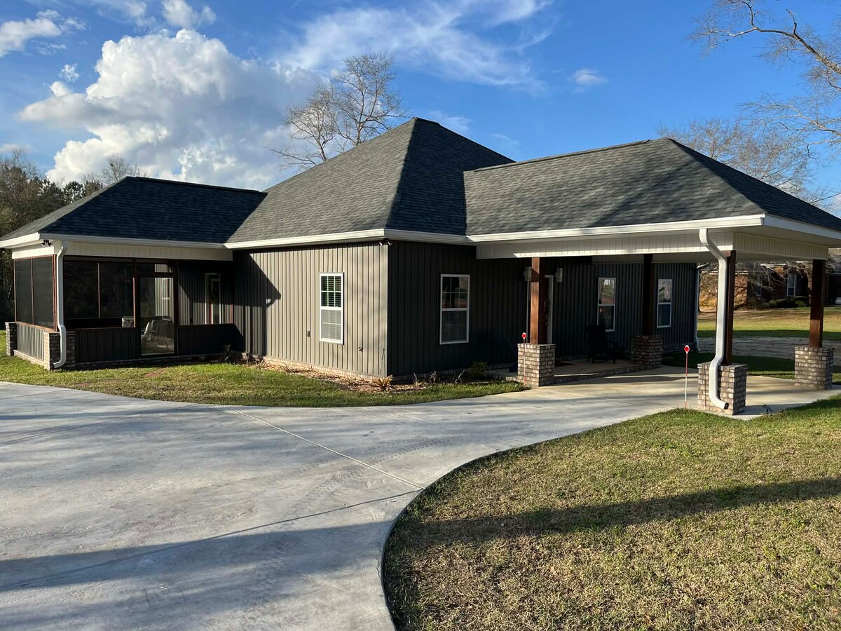 Ласкаво просимо до місця комфорту та легкості. Відпочиньте і розслабтеся всередині або насолоджуйтеся прохолодною зірковою ніччю з друзями та родиною біля вогнища. Розташоване на двох акрах, «Помешкання над мостом» знаходиться всього за милю від магазинів, ресторанів та фермерського ринку в центрі міста. Якщо ви шукаєте трохи задоволення та захоплення, казино Wind Creek і Atmore Dragway знаходяться всього в 12 хвилинах їзди по дорозі. Місцевий майданчик і міські парки також знаходяться всього за милю.