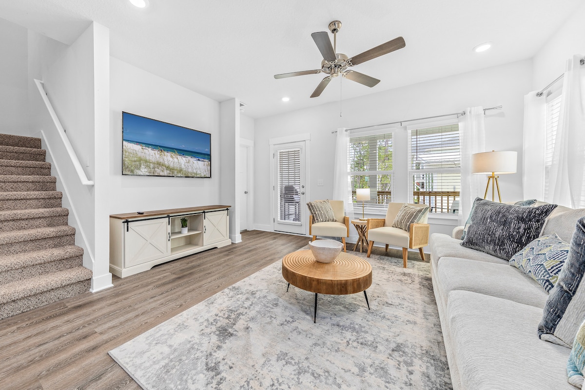 Розважайтеся всією сім 'єю в цьому просторому двоповерховому помешканні! Красиве нове помешкання з 3 головними апартаментами, які включають ванну кімнату для кожної спальні, розкішні матраци Tuft & Needle та двоспальний балкон для відпочинку на відкритому повітрі. Швидка прогулянка або поїздка до центру Пенсаколи з пивоварнями, кафе, магазинами тощо! 15-20 хвилин їзди до пляжу Пенсакола. Чудовий Wi-Fi у всьому помешканні. У вашому розпорядженні два паркувальні місця та вулична парковка. Пральна та сушильна машини на території.