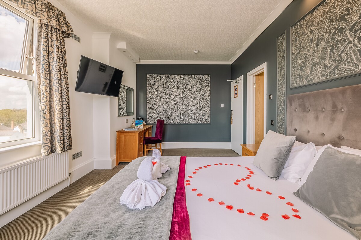 Toothbrush Rooms @ Lattice Lodge - готель зі спільними зручностями для самостійного приготування їжі. 14 спалень із суміжними кімнатами з мікрохвильовою піччю та міні-холодильником. Велика повністю обладнана спільна кухня, їдальня, вітальня з телевізором та оранжерея. Безкоштовна парковка, і у всіх номерах є смарт-телевізори та необмежений безкоштовний Wi-Fi 200 МБ. У цьому НЕВЕЛИКОМУ ДВОСПАЛЬНОМУ ліжку є двоспальне ліжко, приліжкові апартаменти, робочий стіл/стілець, приліжкові шафи, шафа з вішалками та феном. Ця кімната розташована на двох сходах і має вікно Velux для природного освітлення.