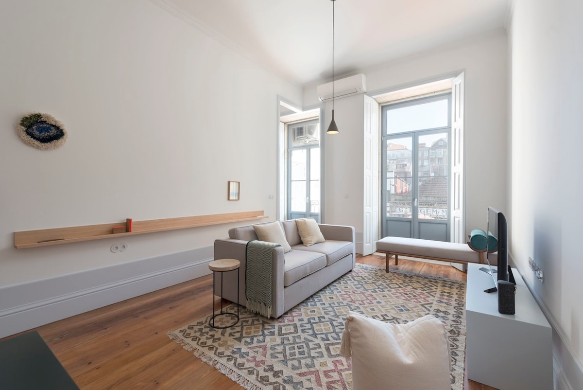 A quiet back-facing apartment for two, featuring air conditioning, a washing machine, and a small private balcony, it's ideal for relaxing after exploring Porto. You will be very close to Rua de Santa Catarina, Mercado do Bolhão, São Bento Station, Douro River and a supermarket just up the street for added convenience. For guests traveling with little ones, a baby pack is available on request (€25) and includes a cot with linen, high chair, bathtub, baby amenities, and a baby towel.