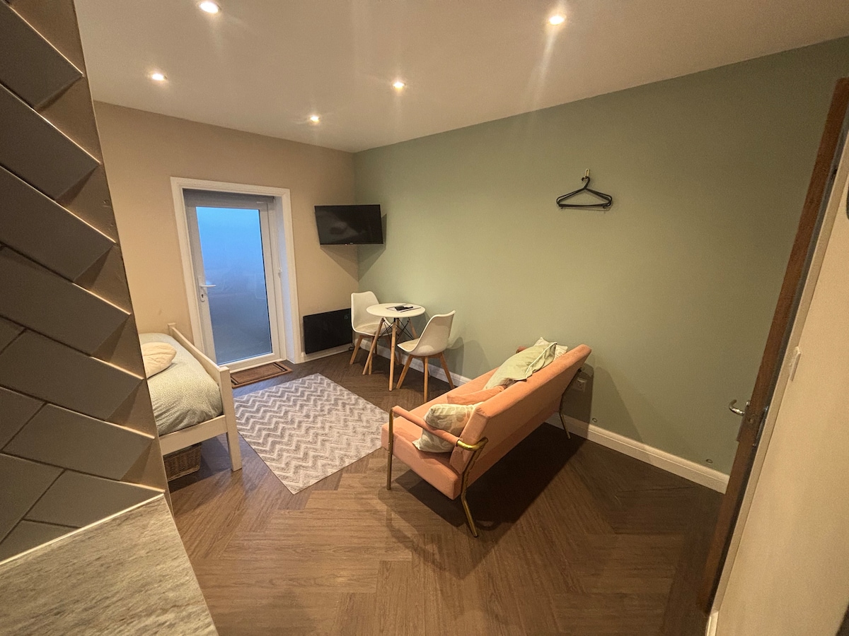 Автономне помешкання, нещодавно оформлене в переобладнаному сараї в тихому тупику. Світлий вітальня з повністю обладнаною кухнею, включаючи індукційну варильну поверхню, невелику духовку та мікрохвильову піч. Ванна кімната з душем і поруччям з підігрівом. Вітальня з двоспальним диваном-ліжком та обіднім столом. Окрема спальня зі комфортним ліжком розміром King size + односпальне ліжко, яке деякі гості вважають за краще використовувати, а не диван-ліжко. Повідомте нам свої уподобання щодо бронювання.