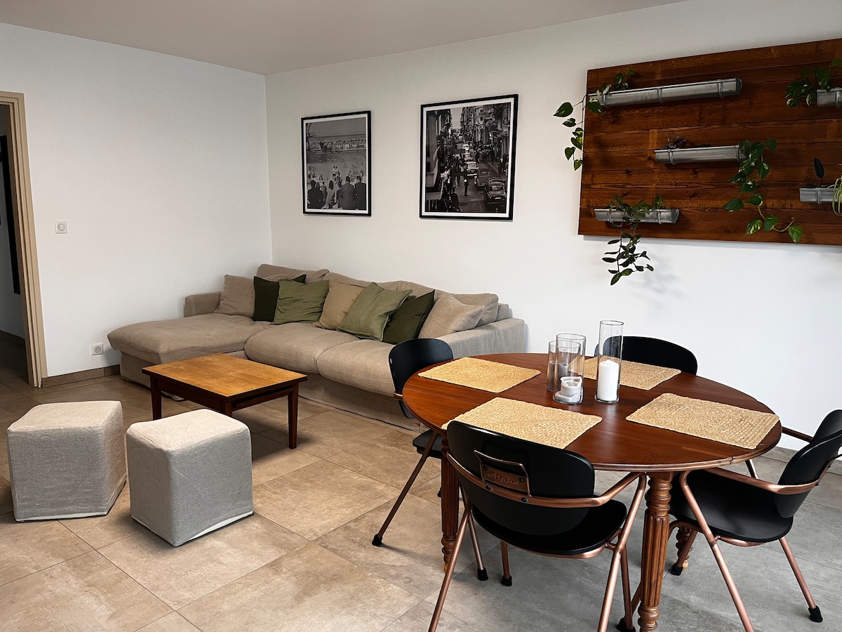 Чарівні дві кімнати відремонтовані, розташовані на 2-му та верхньому поверхах невеликого кондомініуму. Він зручно розташований в центрі міста, в 2 хвилинах ходьби від моря, вулиці Сен-Жан та ринку, на затишній вулиці і недалеко від магазинів. Це помешкання розраховане на 2 осіб, диван не розкладається. - Ліжко розміру King size у готелі 160X200 - Обладнана кухня - Ванна кімната з душем - телевізор та Wi-Fi - кофемашина Nespresso - Постільна білизна та рушники надаються.