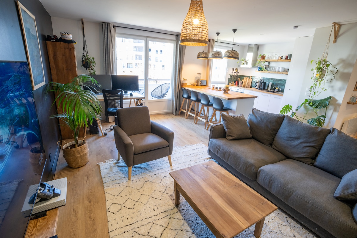 Квартира, 6-й і верхній поверх, доступний, звичайно, за допомогою ліфта, 60 м2 у вашому розпорядженні, 5 хвилин від центру міста Аннесі та 10 хвилин ходьби від озера. Захоплюючий вид на гору. Тихо, сонячно, ідеально для пари. Доступ до приватної парковки кондомініуму. Спальня обладнана двоспальним ліжком 160. Оренда в липні та серпні на мінімум 4 ночі. Тижнева знижка. Протокол прибирання, адаптований до вимог щодо охорони здоров’я.
