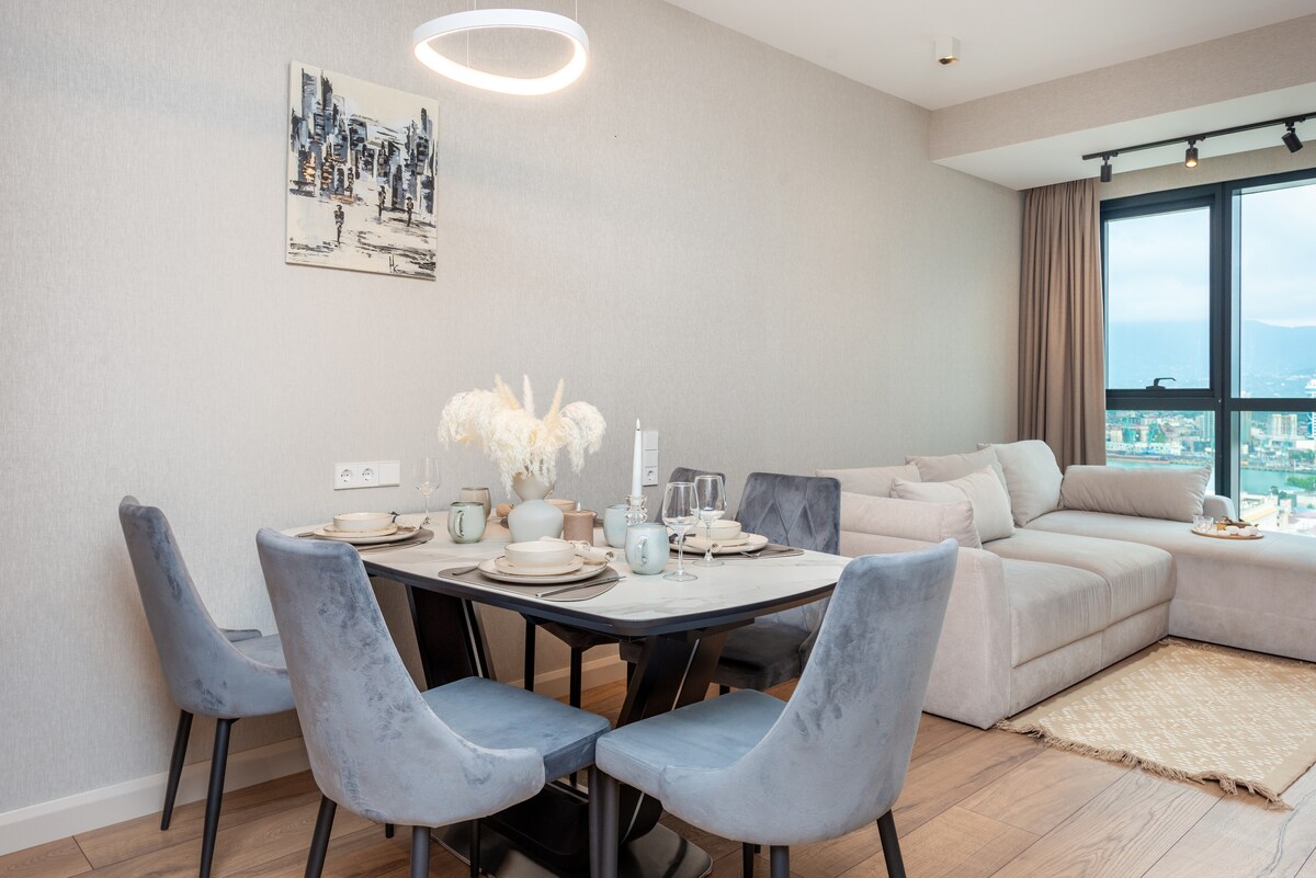 Ласкаво просимо до нашої колекції Supreme, де комфорт, дизайн і якість поєднуються на найвищому рівні. Ця квартира преміум-класу в Porta Batumi Tower пропонує приголомшливий вид на море та гори, стильний сучасний інтер’єр, нову кухонну техніку, підігрів підлоги та великий телевізор Smart TV. Ідеально розташоване поруч зі Старим містом та основними пам’ятками, воно ідеально підходить для 4 гостей, які шукають елегантність, спокій та підвищений рівень перебування!