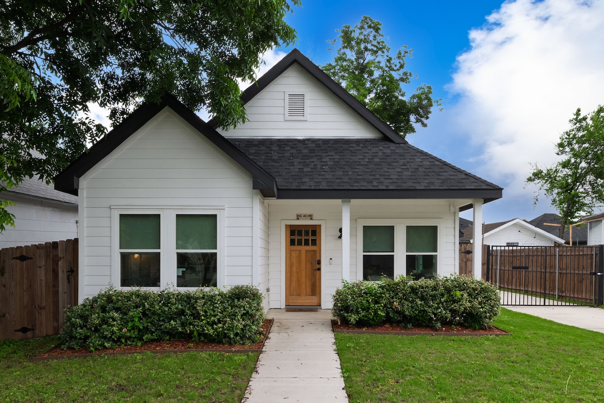 Розслабтеся в цьому унікальному і центральному відпочинку. Це повністю оновлене бунгало 1920-х років має шарм з усіма сучасними зручностями. Розслабтеся в сяйві вогняної ями патіо. Створіть шедевр на кухні з сучасною індукційною плитою, верхньою частиною лінії посуду та ящиком для спецій. Обійміть до ваших улюблених фільмів з телевізором спальні. Розслабтеся у водоспадному душі або ванні. Грайте в центрі Форт-Уорта(10 хв) або на стадіоні Stockyards/Cowboys Stadium/Six Flags/Texas Ranger 's Ballpark (20 хв).