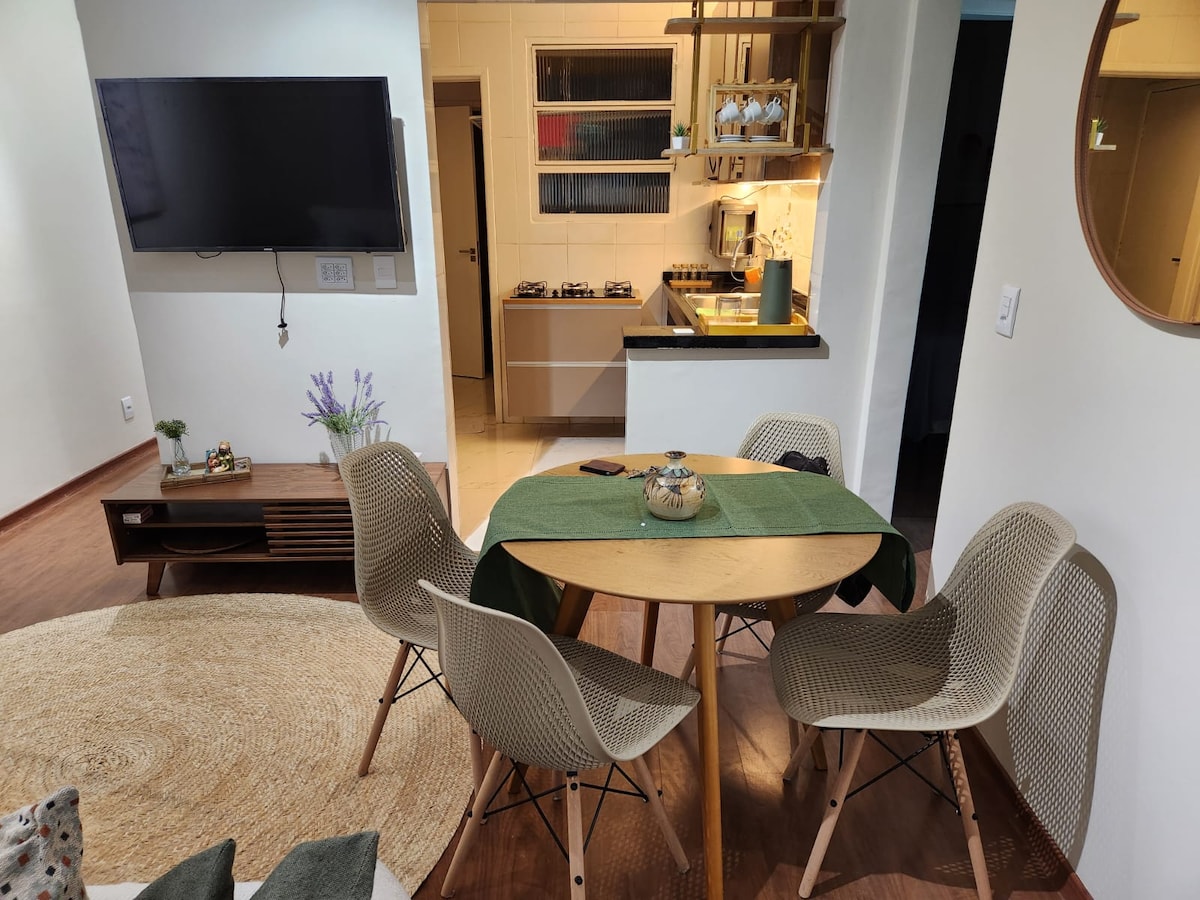Розкішний лофт, 45 м2, кондиціонер, стіл для 4 осіб і стіл, повна та обладнана кухня, сушарка, машина. Nespresso та інші практики. Дуже просторе ліжко розміру «queen size», 1 диван-ліжко та телевізор Smart 55'c з Wi-Fi та мережею. Прекрасний вид! Загальний відкритий майданчик: повноцінний тренажерний зал, пральня, басейн з обігрівом, джакузі та сауна. Привілейоване розташування поблизу Даймонд, лікарня Матердей, Центральний ринок БХ, Суперноссо тощо. 1 місце та 24-годинні швейцари Зручності, які ви відчуваєте вдома!