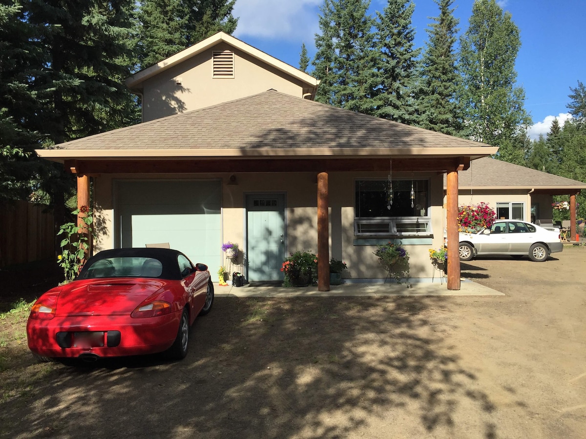Затишний приватний будинок з 1 спальнею та 1 ванною кімнатою, недалеко від міста, всього в парі миль від аеропорту. Поруч чудові стежки для піших прогулянок і катання на лижах, але за межами міста достатньо, щоб отримати чудове шоу від північного сяйва. Нещодавно оновлене помешкання з тихим середовищем, ідеальний відпочинок. Повнорозмірна пральна/сушильна машина та всі потреби кухні. Прекрасне помешкання на Алясці, де можна спостерігати, як плавучі літаки приземляються і злітають із приватного ставка через дорогу. Великі вікна з чудовими краєвидами! Можна з домашніми тваринами!