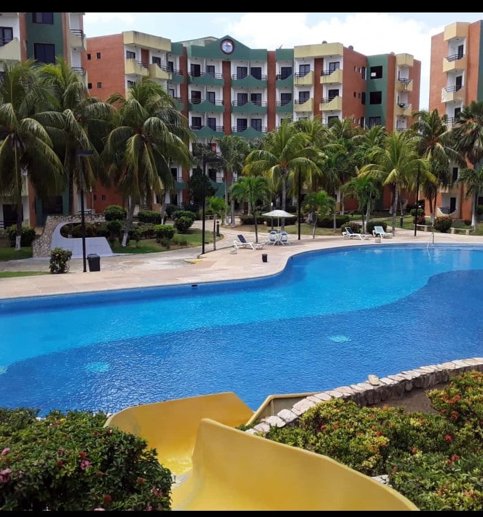 Небесна квартира на пляжі! Комфорт з - обладнана кухня; - Інтернет - 2 кімнати - 2 b. - повна білизна; - Кондиціонер - Гамак і 3 дивани-ліжка - Басейн із солоною водою - дитячі басейни; - Великі соціальні зони з 3 ресторанами, - Кілька курсів. - Маленький приватний острів із 2 пляжами – Полюбуйтеся заходом сонця на пляжі під музику Цілодобова охорона Загальна конфіденційність Перший поверх із терасою, грилем і гамаками з виходом до лагуни з рибою та качками.
