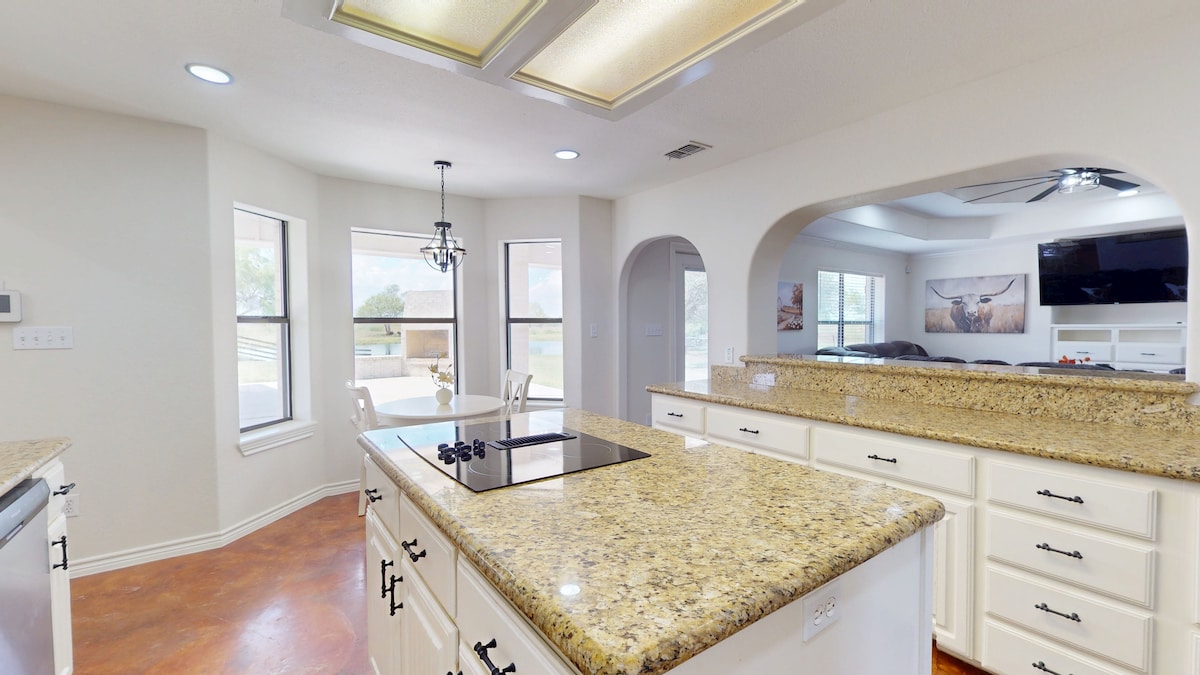 Цей просторий і комфортабельний будинок на ранчо, розташований у тихому районі, ідеально підходить для сімей або груп, які хочуть відпочити. Затишні житлові приміщення, повністю обладнана кухня та великий задній двір — у вас буде все необхідне для чудового перебування. Будинок розташований всього в 5–10 хвилинах від місцевих ресторанів, магазинів, бази ВМС Кінгсвілл, Техаського університету в Кінгсвіллі та ранчо King Ranch! Незалежно від того, чи ви насолоджуєтеся ранковою кавою на веранді, чи збираєтеся з друзями, це ранчо є ідеальною базою для відпочинку та релаксації.