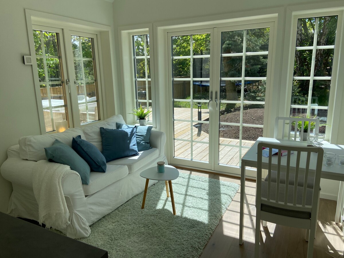 Välkommen att hyra ett ljust och nybyggt gästhus med centralt läge på vackra Falsterbonäset. Huset ligger omgivet av grönska och avskilt från huvudbostaden med egen veranda, utemöbler och grillplats. På cykel nås det mesta inom 4 till 10 minuter, allt från tennis- och padelbanor, Falsterbo brygga/strand, Falsterbo Horseshow och golfklubbar på ena sidan näset och trevliga restauranger, kallbadhus, Skanörs hamn/strand m.m. på andra sidan näset.