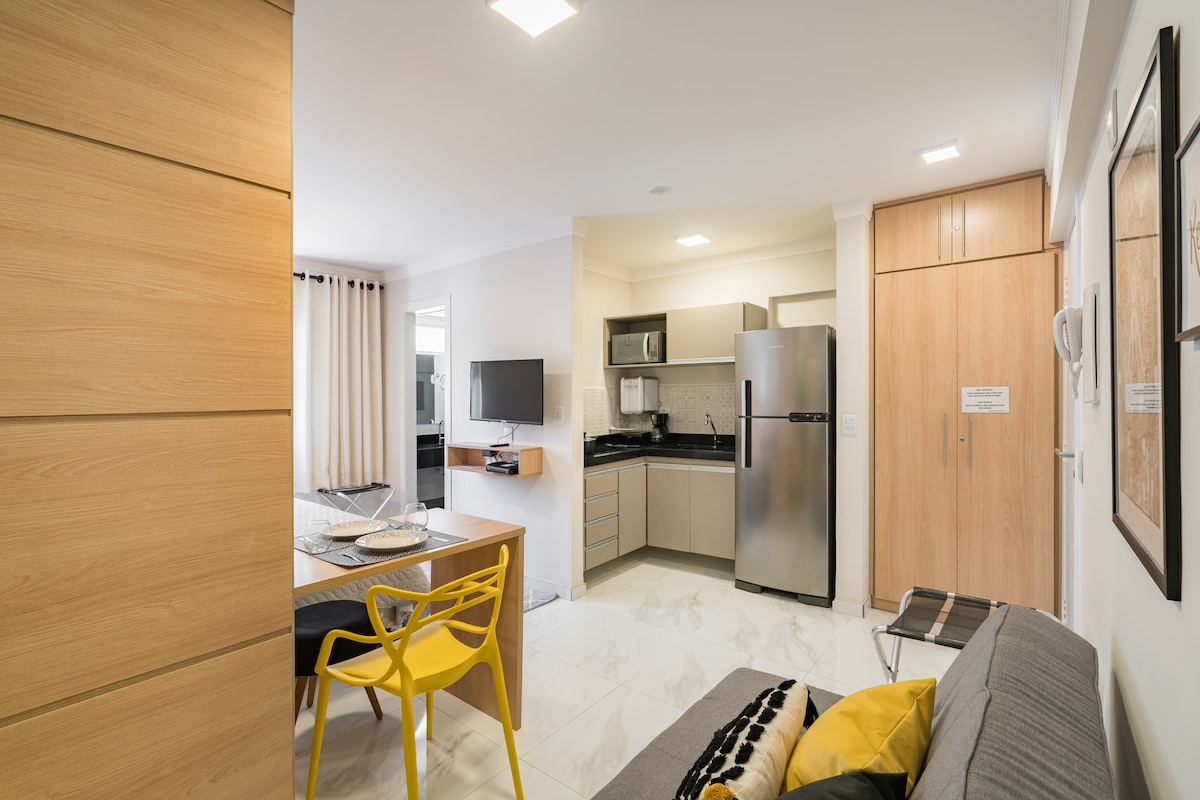 🏠 Розкішна студія, затишна в чарівній Віла Мадалена, одному з найкреативніших і богемних районів Сан-Паулу ☺️ Ідеально підходить для відпочинку, кондиціонер/обігрівач, затемнені вікна та повністю обладнана кухня 😎 На супертихій вулиці, недалеко від ринку, аптеки та найкращих барів і ресторанів — Travessa da Rua Harmonia, лише за 5 хвилин ходьби від всесвітньо відомого Beco do Batman 😍 Ваш комфорт – наша мета 🔐 Цілодобовий консьєрж і цифровий замок для вашої безпеки та комфорту