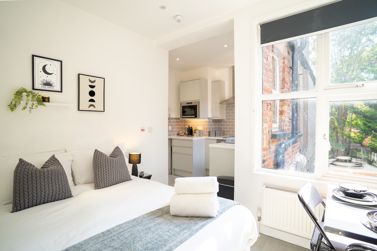 Teddington Lodge – стандартна студія. Світла студія площею 26 м² для 2 дорослих. Ліжко розміру «super king-size». Міні-кухня з Nespresso. Ванна кімната з пом’якшеною водою. 50-дюймовий смарт-телевізор із потоковими додатками. Надається безкоштовний Інтернет (Wi-Fi та Ethernet). Затемнюючі штори для спокійних ночей. Пральні машини самообслуговування – безкоштовне користування. Щотижневе прибирання. Паркування на території за наявності. Готельний комфорт із гнучким простором.