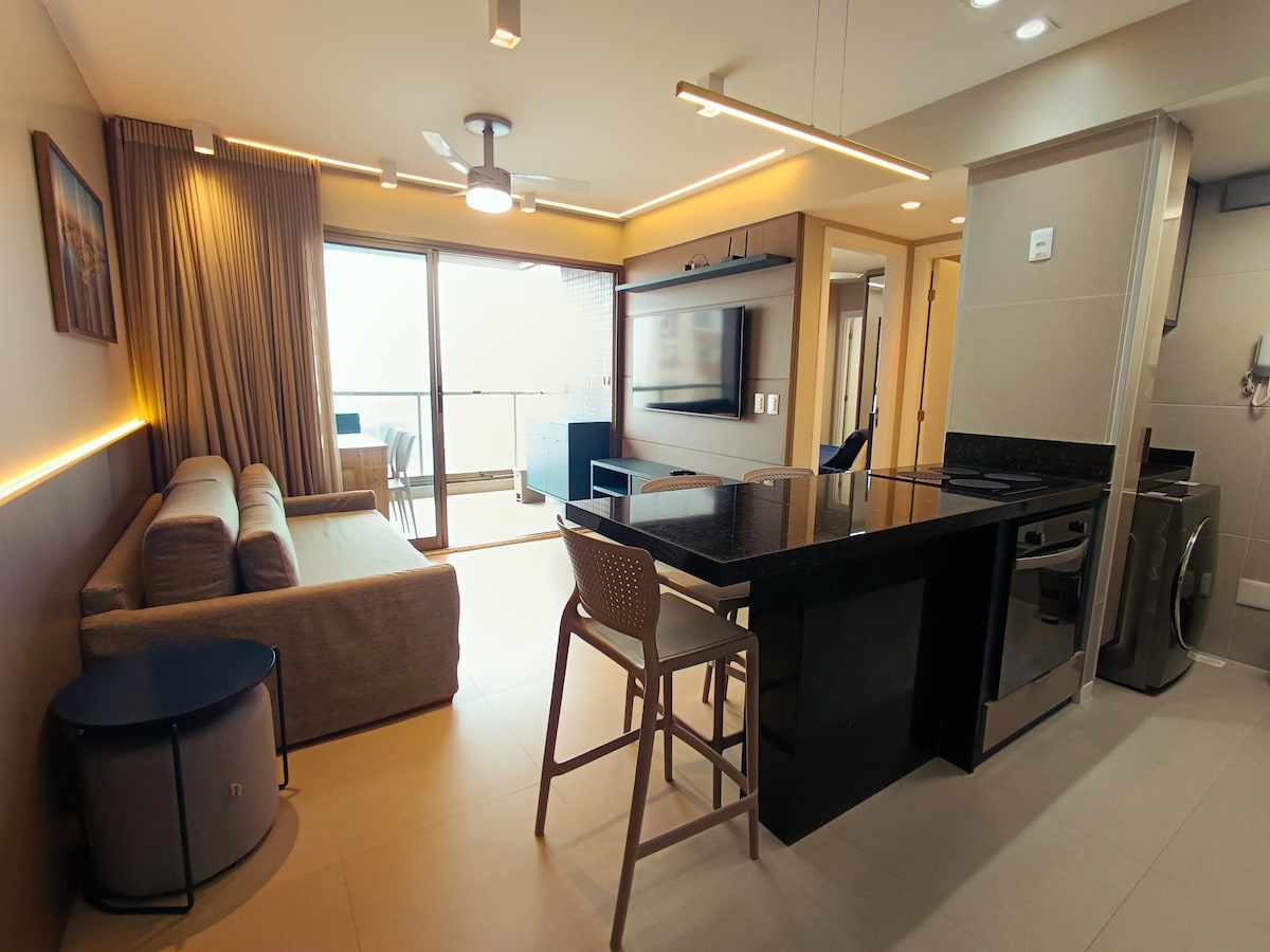 Зручні, сучасні та вишукано оформлені апартаменти в новому будинку 535 Barra, з прекрасним видом на Praia do Farol da Barra. У квартирі є спліт-система кондиціонування повітря у всіх кімнатах, 50-дюймовий смарт-телевізор, 500 Мбіт/с Wi-Fi (оптичний кабель), пральна машина та сушарка, басейн, тренажерний зал та приватна парковка. Центральне та привілейоване розташування, недалеко від бурхливого нічного життя Барри та за кілька метрів від її чудових природних басейнів та головного туристичного місця — Фарол-да-Барра.