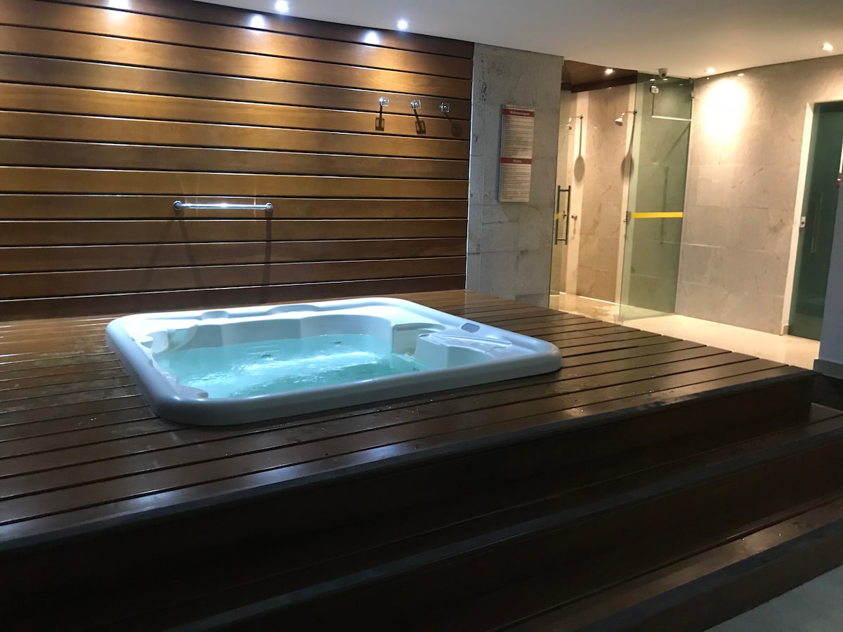 Насолоджуйтеся чудовим враженням у цій квартирі, в готелі Vision, суперсучасні та затишні. Розташований у центрі Бразилії, недалеко від основних пам 'яток міста та торгових центрів. Наша квартира пропонує додаткові зручності, смарт-телевізор із Netflix, Wi-Fi (350 мегабайт), 1 додатковий матрац (за запитом за запитом під час бронювання), кухню з різним посудом та електросами, паркувальне місце та цілу зону відпочинку з басейном, сауною, рестораном та тренажерним залом.