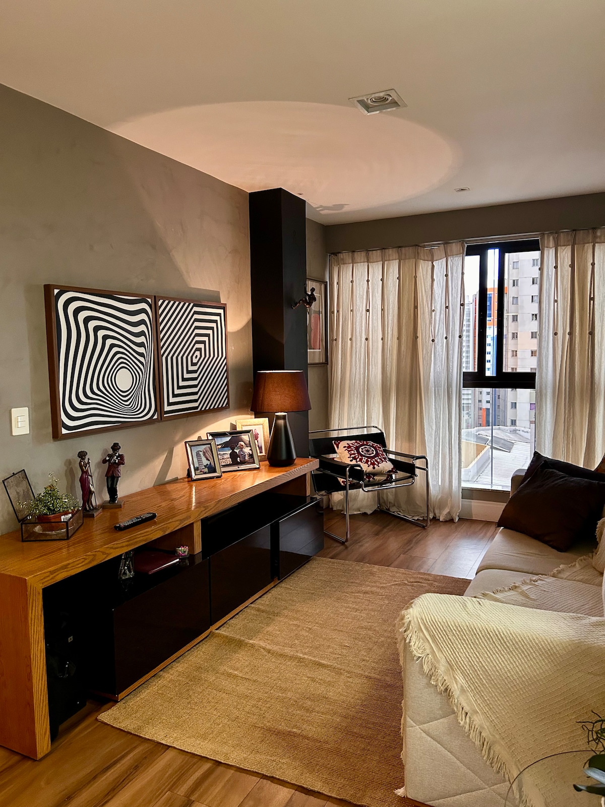 Розкішна квартира з панорамним видом і ексклюзивним доступом до магазинів DF Plaza. Вишукане середовище, повністю автоматизоване через Alexa (освітлення, кондиціонер, телевізор і жалюзі). Кімната з ліжком queen-size та ергономічними подушками; вітальня з диваном-ліжком та Smart TV 65дюймів. Повноцінна кухня для гурманів і ванна кімната з преміальними зручностями. Кондомініум із панорамним басейном, тренажерним залом і робочим місцем. Надшвидкий Wi-Fi, приватна парковка та цілодобова охорона. Ідеально підходить для пар і професіоналів. Натисніть дзен.