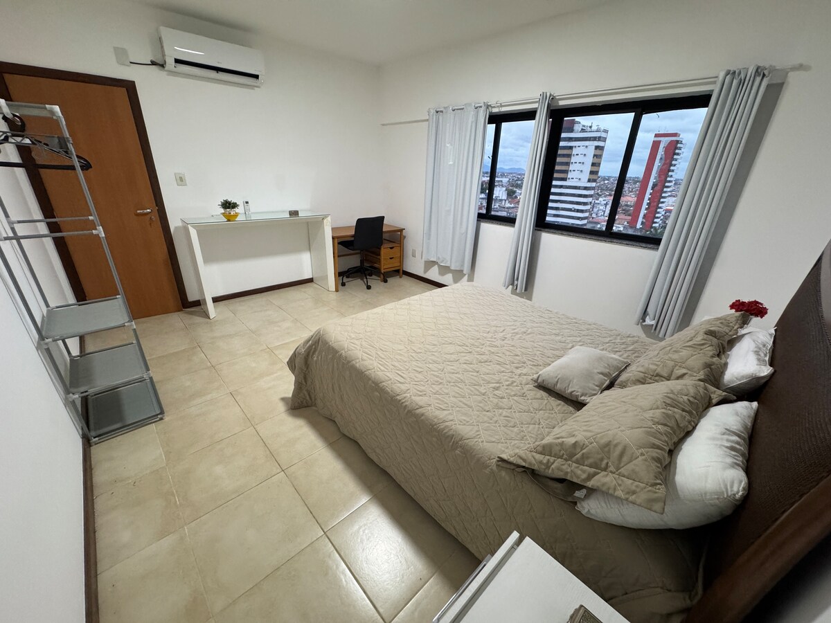 Затишний і функціональний, розташований у тій самій будівлі, що й Executive Hotel, на перетині Av. вул. Жетуліо Варгас і просп. Maria Quitéria. Поруч розташовані лікарні (Emec, São Matheus, Rafáh та IHEF), банки, аптеки, ресторани, а за кілька метрів — Getúlio Vargas, ідеально підходить для піших прогулянок та активного відпочинку. Комфорт, практичність і безпека в центрі міста.