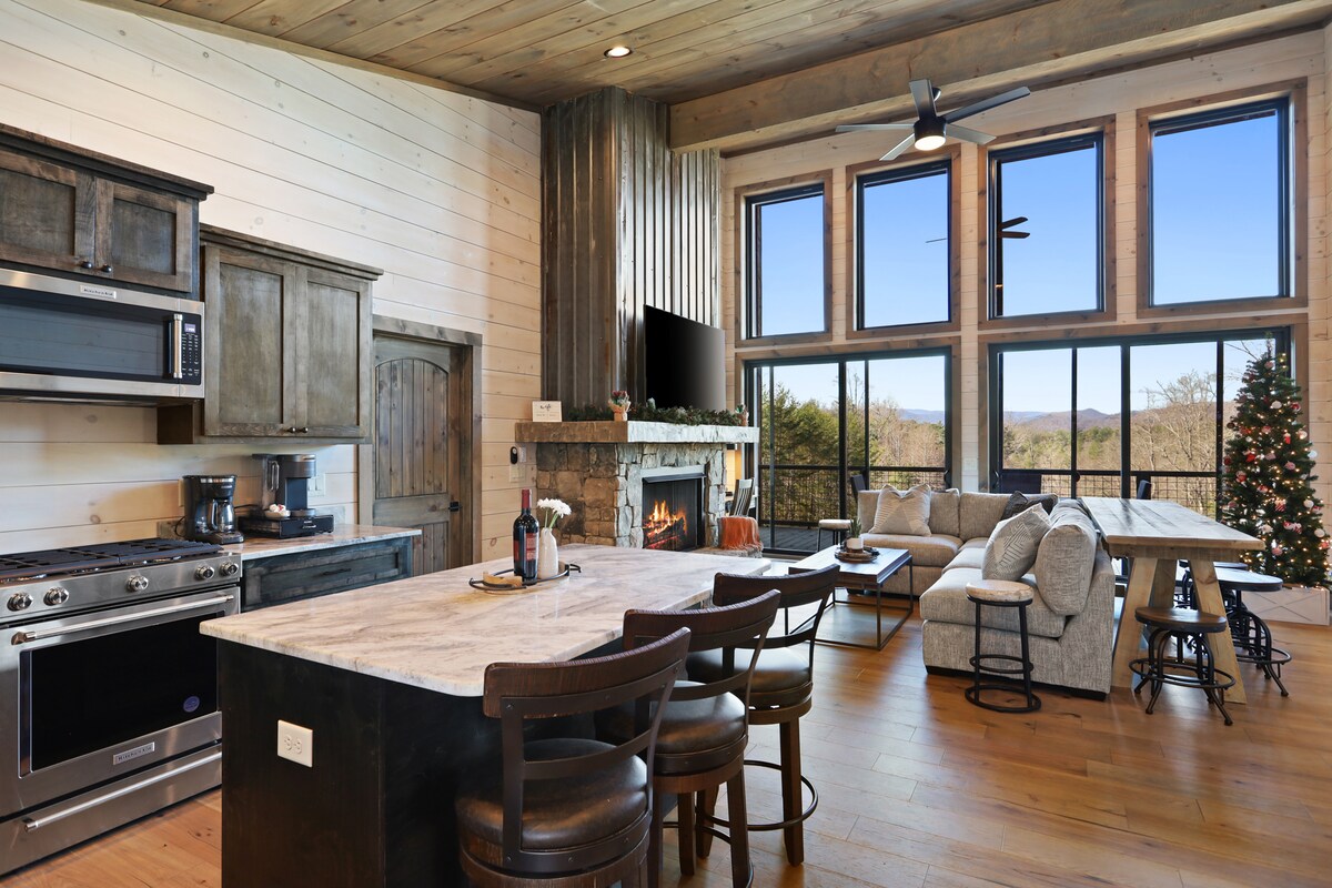 • Новий розкішний зруб площею 3300 кв. футів - шикарний будинок у Північній Джорджії • Розташування! 12 хвилин від центру Блакитного хребта та 7 від МакКейсвілла! • Легкий доступ до садів Mercier • 3 спальні (2 ліжка King size) ПЛЮС бонусна спальна/ігрова кімната (макс. 11 спальних місць); 3½ ванні кімнати • 2 тераси. Гідромасажна ванна, газовий гриль • Кафедральні стелі з великими вікнами • Швидкий Wi-Fi (200 Мбіт/с) • 3 каміни (по 1 газу всередині на кожному поверсі, 1 зовні на терасі) та чаша для багаття • 7 телевізорів із плоским екраном високої чіткості • Ігрова кімната з аркадою, столом для пінг-понгу та 65-дюймовим телевізором • Барна стійка з холодильником і раковиною