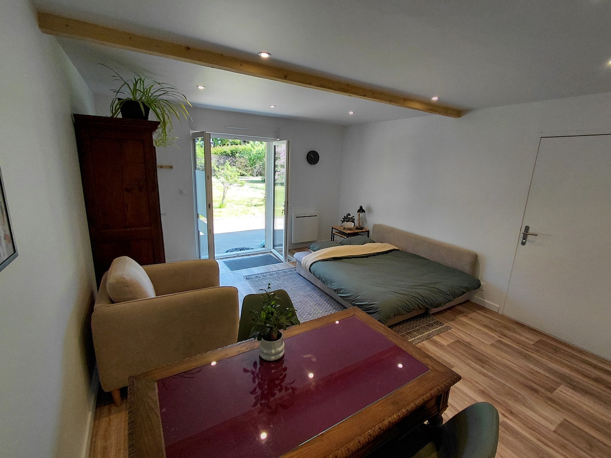 Ательє – це позачасовий притулок, поетична інтерлюдія між сушею та морем, на краю лісу. Цей маленький яскравий і затишний кокон запрошує вас відпочити, відпочити в центрі природи, слухаючи тишу і спів птахів. Розташована біля входу на півострів Крозон, недалеко від абатства Ландевеннек, ви можете відкрити для себе чудову дику та незайману природу, ідеальну для занять спортом на відкритому повітрі або спокійного відпочинку.
