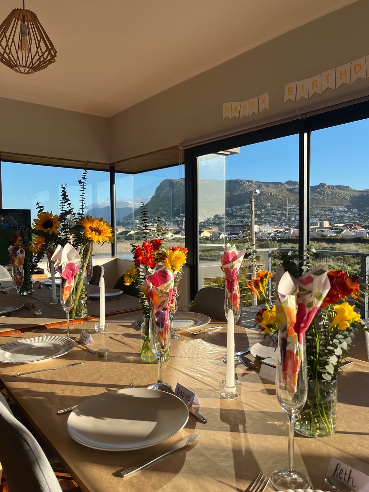Nestled in the exclusive area of Cairnside, this semi-detached house offers the perfect place to enjoy beautiful views of False Bay and is less than 5 mins from the local beach and tidal pool. One of our favourite past times is watching the water activities from the sheltered deck. Whale spotting, kite surfers jumping in the bay, sailing regattas and flocks of birds migrating along the coast. The sun rises across this side of the bay, if you're up early you'll be mesmerised by the view.