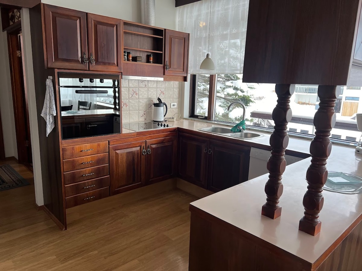 Квартира знаходиться на нижньому поверсі. Недалеко від продуктового магазину, кафе Klara , ресторану Höllin та красивої води всередині міста, гавань знаходиться поруч, хороші пішохідні стежки, поле для гольфу, басейн і прекрасні гори, чудова зимова гірськолижна зона. Можна взяти напрокат гідроцикли з керівництвом, щоб побачити гори з моря з Farytale at see,в Ólafsfjörður. Коротко для спостереження за китами в Дальвіку або Хауганесі. 4 ліжка 90x200 .