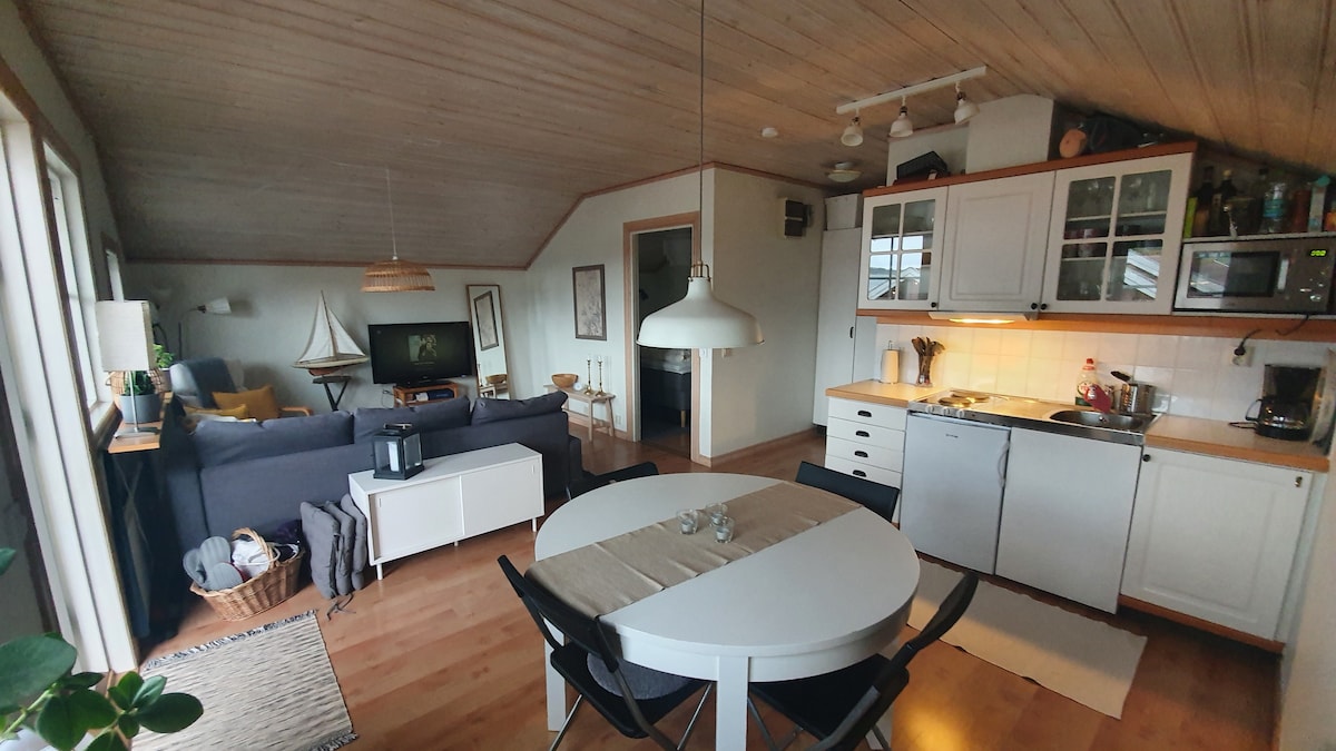 У центрі Ф 'яльбеки, невеликого прибережного містечка на узбережжі Богуслана з близькістю до моря, безтурботні скелі та зелені ліси, розташовані в центрі міста та стильні апартаменти. За декілька хвилин ходьби ви можете спуститися до гавані з кількома ресторанами та магазинами. Недалеко від гавані ви також знайдете можливість купання, а також прогулятися на човні на дивовижний архіпелаг. Квартира складається з двох кімнат з двоспальним ліжком та диваном-ліжком.