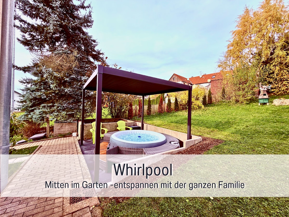 Ласкаво просимо до нашого помешкання! Відпочиньте від метушні й знайдіть у нас затишний відпочинок подалі від міського шуму. Наш маленький чарівний гостьовий будинок – ідеальне місце, щоб розслабитися і відновити сили. Розташоване в центрі красивого району Майн-Шпессарт, наше село є чудовою базою для ваших пригод. Після насиченого подіями дня ви зможете ідеально відпочити в нашому саду з сауною та басейном.