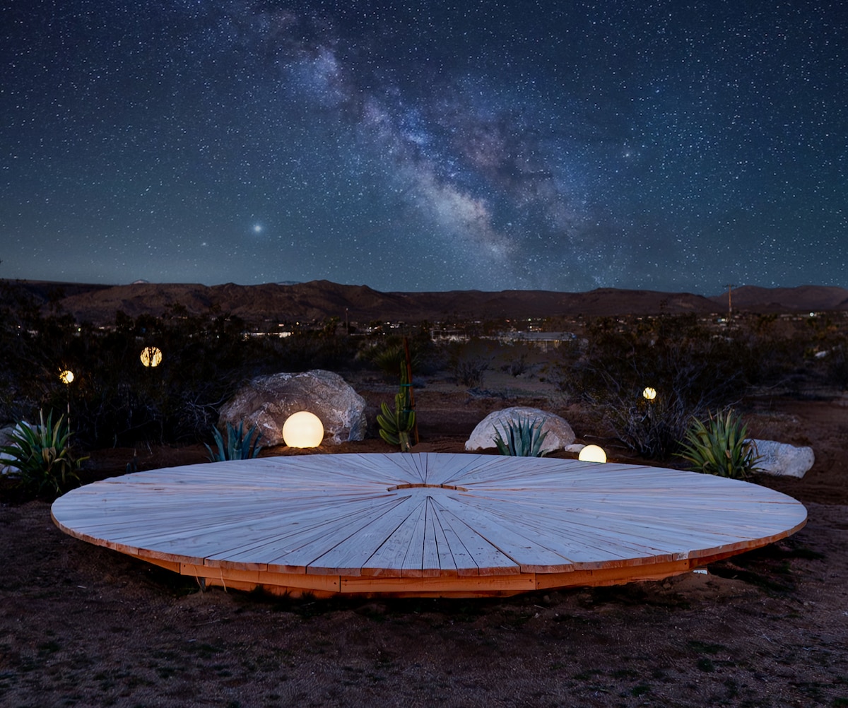 Ласкаво просимо до The Seventh Ray House, ідеального відпочинку в пустелі в районі Джошуа-Трі для шукачів, які хочуть відновити зв 'язок із природою та оживити свій дух. Найцікавіші місця помешкання: - 5 приватних акрів спокійної пустелі - Скандинавська гідромасажна ванна XL - Ковбойський басейн для охолодження в спекотний день. - Чарівна кругла платформа для спостереження за зірками та «Місячний сад» - Дивовижні краєвиди на пустелю на схід і захід сонця - Поруч із чудовою їдальнею в La Copine & Giant Rock Meeting Room - Національний парк Джошуа-Трі - 25 хвилин їзди.