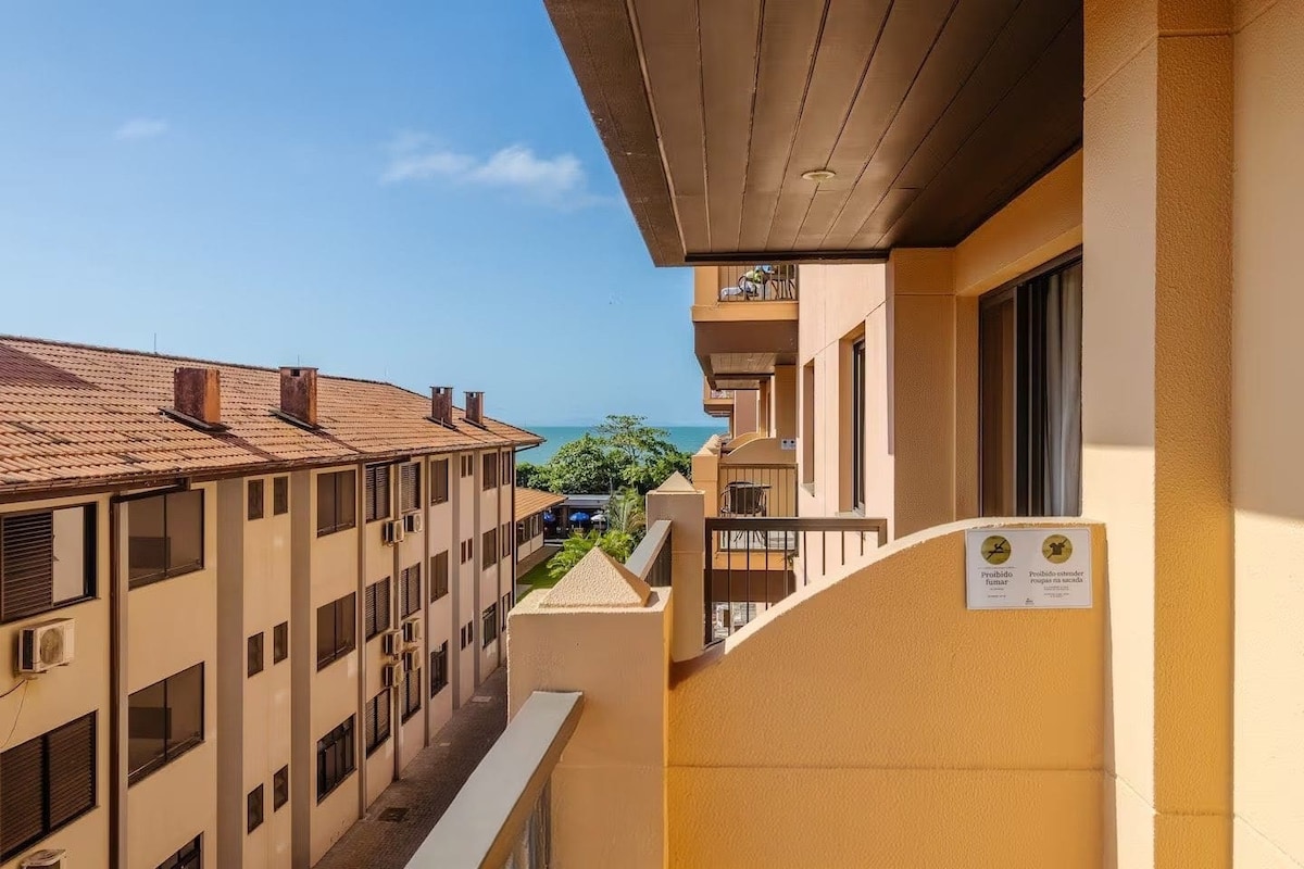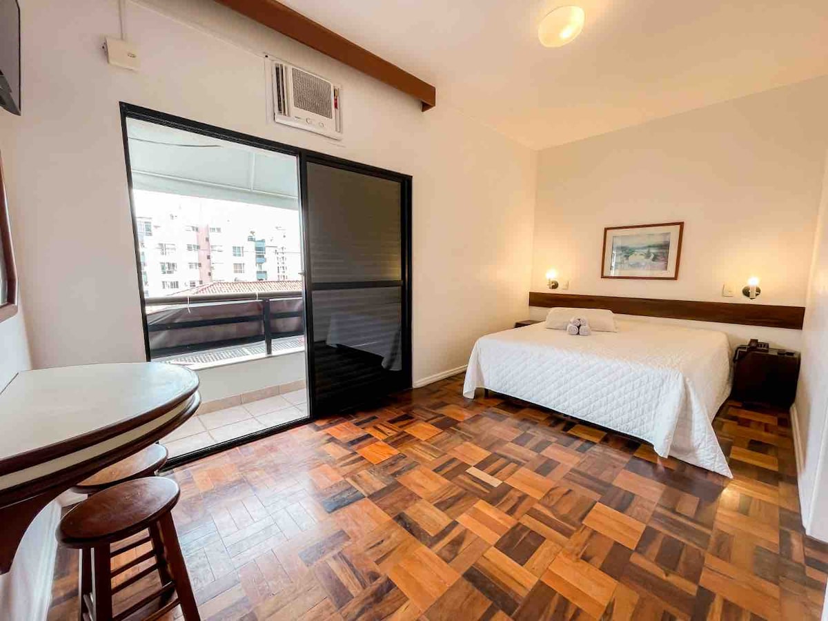 Люкс із балконом затишний і розташований у чудовому місці, за 150 метрів від пляжу Кашуейра-ду-Бом-Жезуш. Мебльоване та оформлене помешкання. Люкс обладнаний двоспальним ліжком розміру Queen size, односпальним ліжком, міні-баром, смарт-телевізором, кондиціонером та Інтернетом. **УВАГА ПІД ЧАС БРОНЮВАННЯ** якщо кількість гостей у бронюванні вказана неправильно, під час прибуття буде стягнуто додаткову плату з гостей