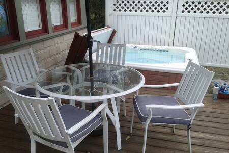 Найкраще з обох світів. Наша сім 'я на набережній площею 11 акрів - ідеальний відпочинок для любителів активного відпочинку та любителів пляжного відпочинку. За допомогою автофургонів на лицьовій стороні помешкання та періодичний наметний автофургонний автофургон, який ви зможете насолоджуватися перебуванням від натовпу, що йдуть по мультованій стежці до води або використовуючи два байдарки, передбачені для гостей. Ми пропонуємо додаткові враження. Бранч на відкритому повітрі для двох/груп, післяобідній пикник, пучки s 'mores тощо. Повідомлення з інтересом.