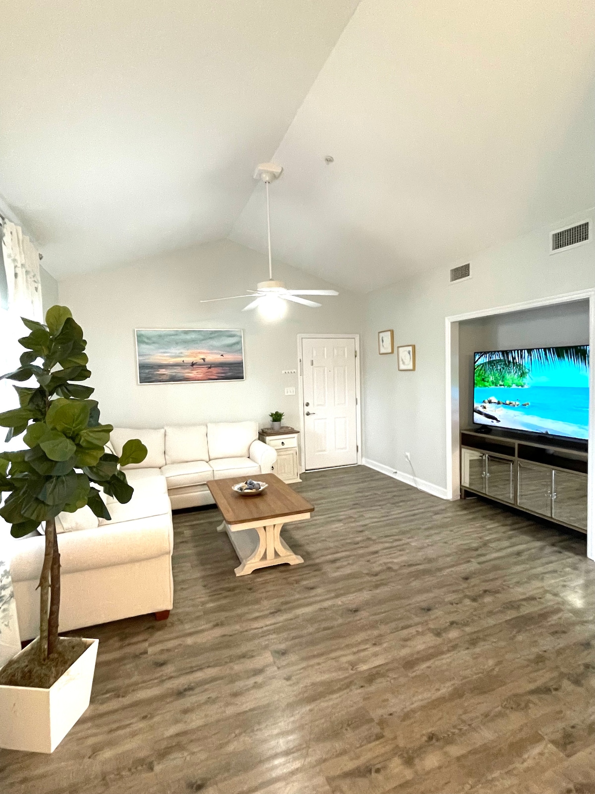 Бунгало Boho розташоване в затишній квартирі з достатньою кількістю зручностей. У помешканні є 3 спальні з 55-дюймовими телевізорами, а також 2 ванні кімнати, а також пральна та сушильна машини. У вашому розпорядженні повністю обладнана кухня для приготування їжі. Тут є громадський басейн та приватне патіо на відкритому повітрі, де можна насолоджуватися сім 'єю та друзями. Це помешкання призначене для створення комфортного перебування з навмисними прикрасами, підібраними для того, щоб з 'єднати вас з пляжем. Прибуття: 16:00 Виїзд: 10:00
