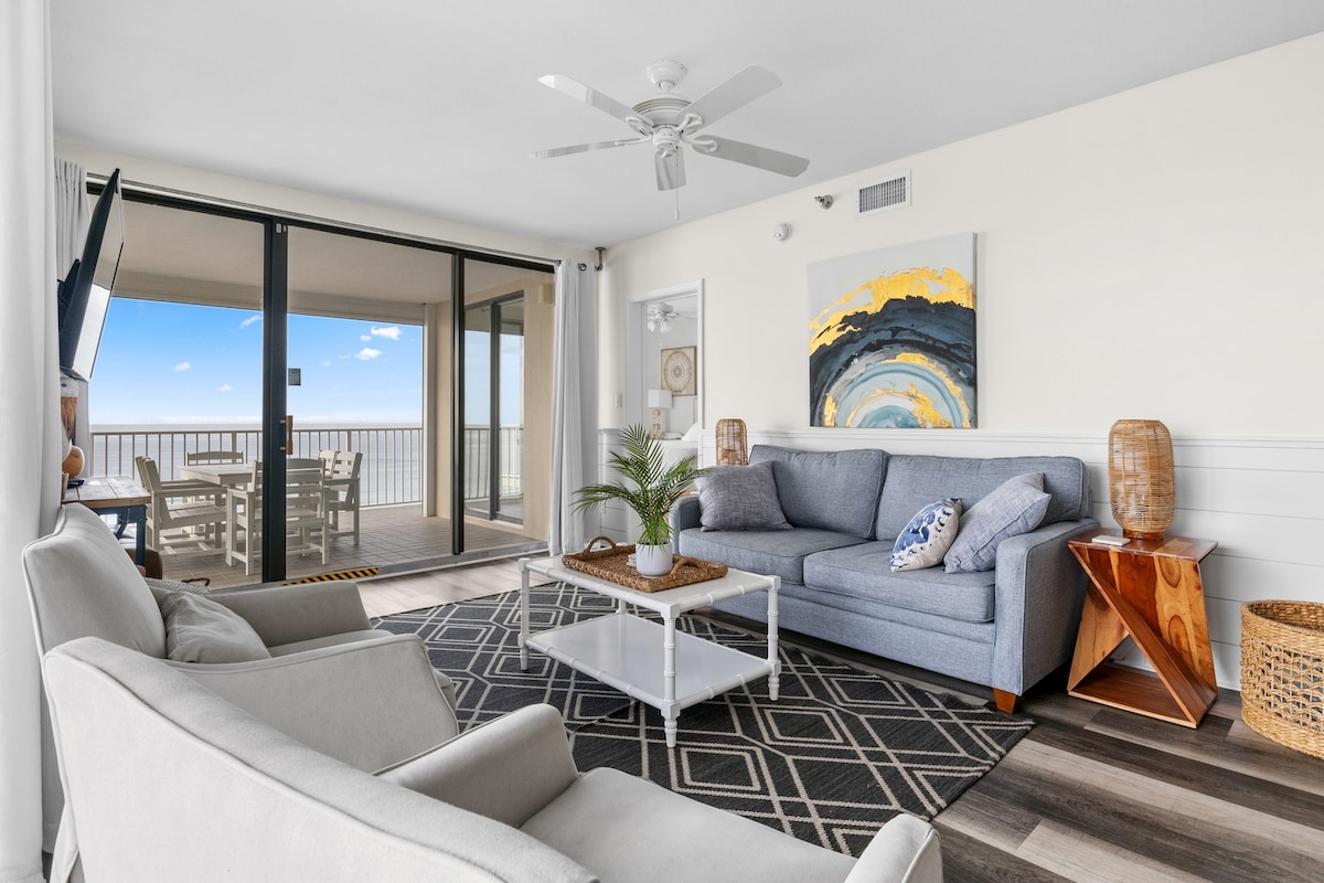 У центрі Gulf Shores розташований цей ПРЯМИЙ ПЛЯЖНИЙ кондоминиум з чудовим видом у кожному напрямку на цукрові білі пляжі та смарагдові води. З балкона можна спостерігати за велетенським сходом сонця та заходом сонця або дивуватися граючим дельфінам. Безпосередньо на Сході знаходиться громадський пляж з багатьма зручностями для всієї сім 'ї, включаючи ресторани, магазини та дитячий майданчик. Після веселого дня приготуйте вечерю на добре облаштованій кухні, відпочиньте з веселим декором та зручним сидінням.