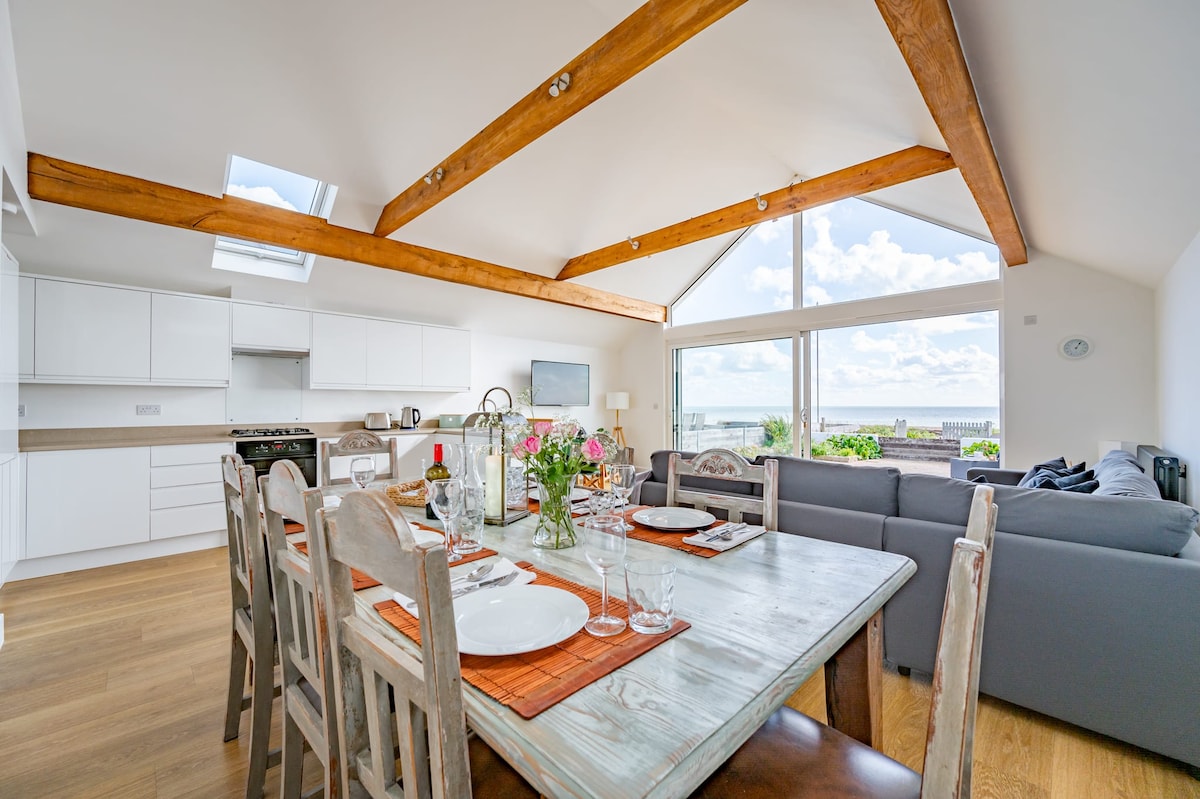 Красиве окреме бунгало прямо на пляжі в затоці Певенсі. Абсолютно нові меблі та обладнання, побудовані та обладнані за найвищими стандартами, ідеально підходять для сімейного відпочинку на березі моря. Достатньо місця на вулиці з прямим доступом до пляжу. Парковка на території з зарядним пристроєм для електромобіля. 3 ліжка. 3 ванні кімнати. Величезна кухня відкритого плану, їдальня, вітальня зі скляною стіною, що виходить у сад. Світлий і просторий з вражаючим видом на море.