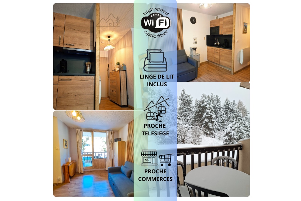 Agréable studio 25 m², 2ème étage sans ascenseur, balcon, entièrement rénové, plein sud, splendide vue sur les montagnes. Parking au pied de la résidence. Cuisine:frigo congélateur, lave vaisselle, micro onde, plaque induction. Coin nuit:lit 140x190 matelas mi-ferme sommier lattes et rangements. fourni: 1 couverture polaire 2 couettes 200, 300gr 2 oreillers Non fourni :draps torchons serviettes de bain. Canapé fixe sans couchage. Douche receveur 140x80. Petit wc. Maximum 2 personnes. Wifi