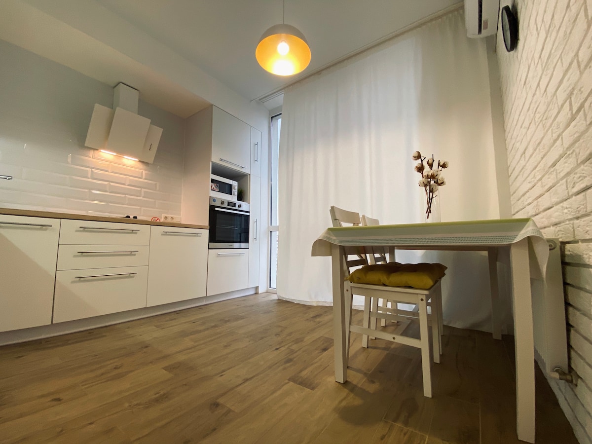 Ми, Вікторія та Костянтин, запрошуємо Вас у гості! Ми з чоловіком багато подорожували, тому знаємо, як добре почуватися вдома, де б ти не знаходився.Ми намагалися зробити квартиру максимально затишною та зручною для наших гостей. Квартира знаходиться в будинку сучасного та чистого ЖК "Золота Ера".На території є безкоштовне гостьове паркування, магазин, дитячі майданчики, тренувальний майданчик для дорослих.Найближчий пляж знаходиться за 1.3 км (15 хв. х пішки або 5 хв. на авто). Ласкаво просимо!