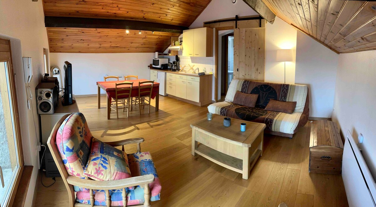 Студія La Biche Повністю обладнана студія площею 25 м2 з видом на гори з балкона. Відмінно підходить для пар. У тихому помешканні, не забуваному, вона знаходиться на верхньому поверсі з ліфтом ліфта. 2 паркінги, включаючи одну приватну перед резиденцією, та одну нижче з цілорічним консьєржем. Захистіть шафку для лиж на першому поверсі. 5 хвилин ходьби від магазинів і крісельного підйомника «Jassettes». Коли дозволяє сніг, лижники можуть прибути до підніжжя резиденції через зелену пробіжку.