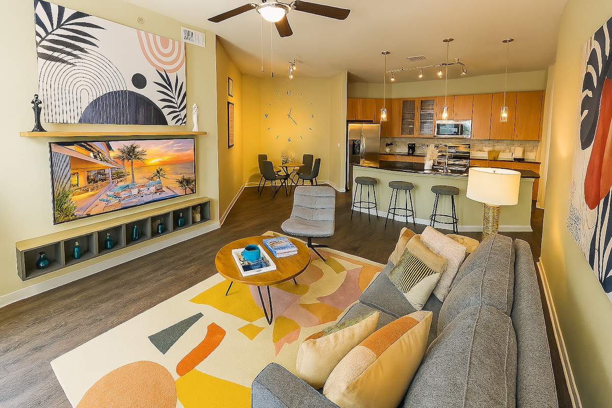 Відчуйте різницю в нашому спеціальному помешканні, яке ми спроектували та побудували для наших гостей! 1800sf, 3 ліжка, 2 ванні кімнати, 14 спальних місць! У центрі Чайна-тауна, негайний доступ до плати Westpark Toll & Beltway 8. Можна з немовлям/дитиною/домашніми тваринами! Усе необхідне/зручності включено: повністю обладнана кухня, 2 двоспальні ліжка, телевізори у всіх кімнатах, постільна білизна/постільна білизна преміум-класу, безкоштовні закуски/напої, всі туалетні приналежності, спеціальне робоче місце, пральна сушильна машина, USB-порти на всій території, надшвидкий Wi-Fi та Netflix, Hulu, Disney+, ESPN+!