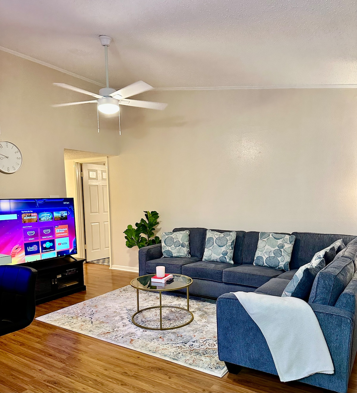 Оновлена квартира на першому поверсі в будинку 1:1 з нещодавно відремонтованою душовою. Зручно розташований у південно-західному Г’юстоні, за кілька хвилин від Чайна-тауну, Меморіального парку Германа та Християнського (баптистського) університету Г’юстона (HBU). Закрита територія. Пральна та сушильна машини всередині блоку. Призначена крита парковка. Ліжко King size у спальні. Розкладний диван у вітальні. Спільний басейн знаходиться всього в декількох кроках від помешкання. Wi-Fi включено. Настінний телевізор Samsung з плоским екраном у вітальні та спальні з Amazon Prime Video та Disney+