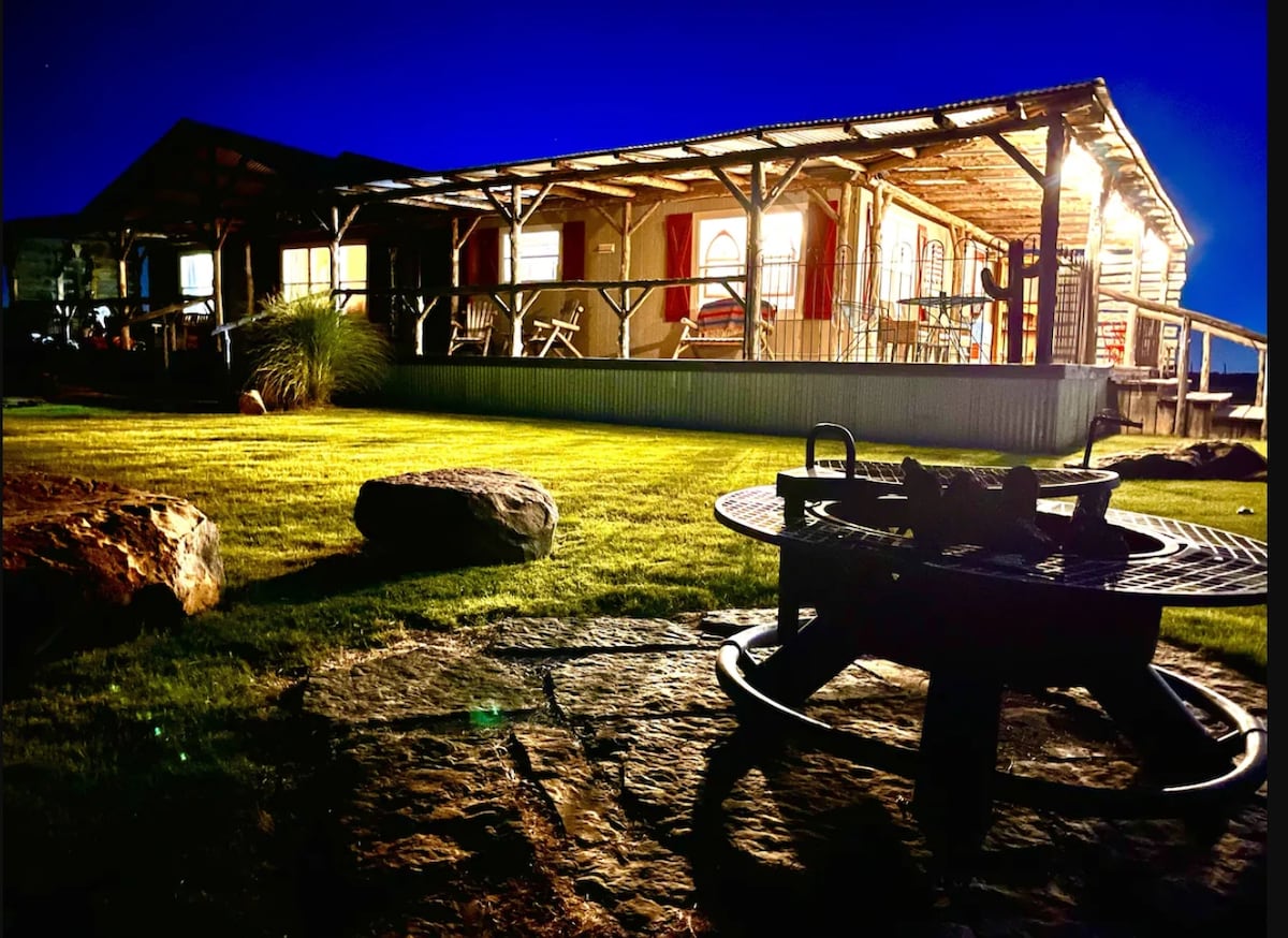 Сімейний та груповий відпочинок – 5-кімнатний будинок на 9 гектарах ізольованої території, схожої на парк, з басейном, джакузі, камінами, кухнею для гурманів, їдальнею та спальнею на 22 особи. 4 ліжка розміру king-size, більярд, дартс, ігри тощо. Прогуляйтеся стежками, проїдьте 5 хвилин до Медицин-Парку та Олд-Форт-Сілл. Чудово підходить для зустрічей, любителів природи та сімейного дозвілля. Можна з домашніми тваринами зі збором. Ціни залежать від кількості гостей. Для заходів, де більше 30 людей, стягуються додаткові збори. Події на 30–50 осіб – 250 $, 50–75 осіб – 500 $, 75–125 осіб – 1000 $, оренда до 80 стільців (2,75 $ за штуку) і 8 столів (10 $ за штуку)