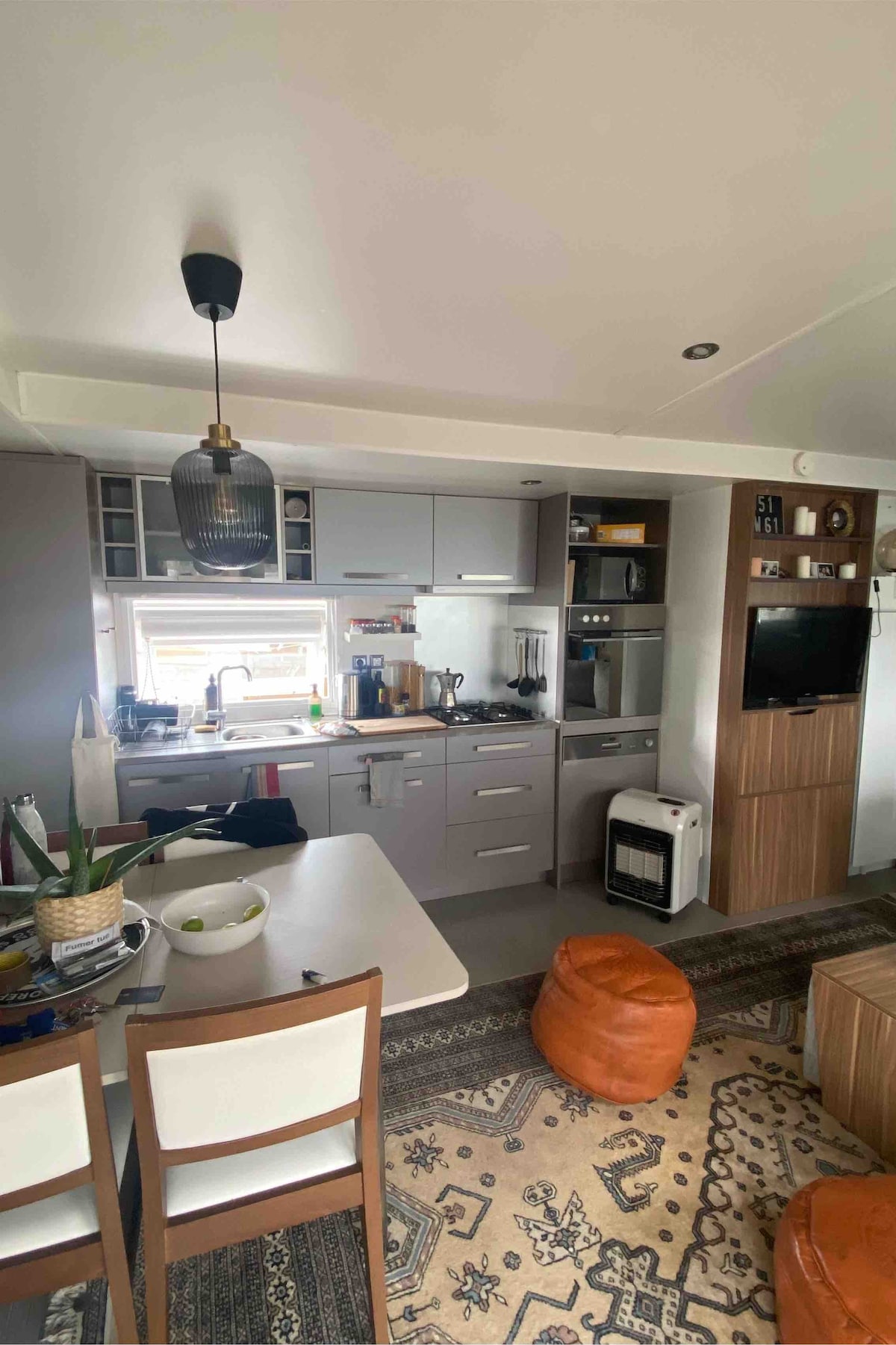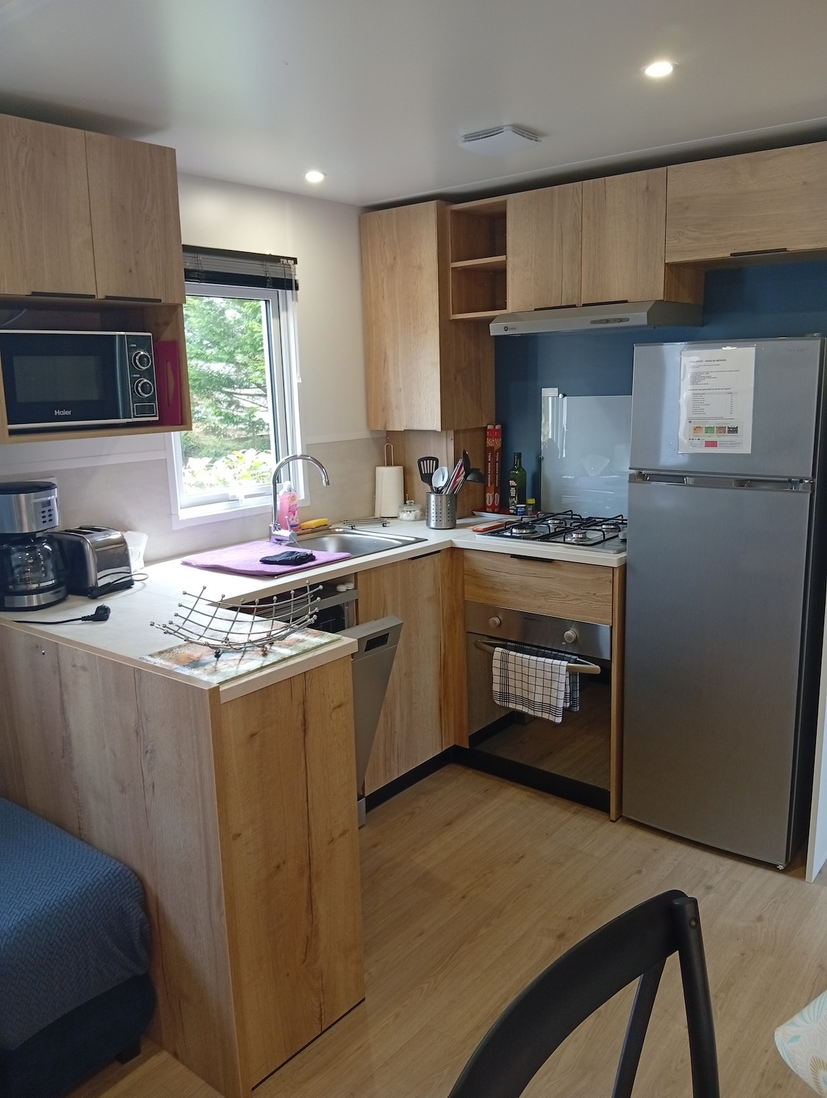 M-home 35 m2 chez catou .fr à Kerfany Plage en bord de mer Grande terrasse couverte, 2 chambres, cuisine équipée : gazinière, four et micro-ondes, hotte, cafetière, bouilloire, grille-pain, TV connectée internet wifi gratuit (Starlink 250Mb/s) dédié au logement Animaux propres et sympas bienvenus Petit camping familial au calme, à 100m de la plage et du sentier côtier, 50m de la forêt, à 3 km des commerces (supérette, tabac, pharmacie...) et à coté de Concarneau, Pont-Aven ou Lorient