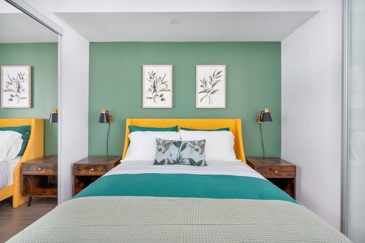 Просторий 1 ліжко+ сучасний кондомініум, розташований в центрі міста. Кроки від озера, парків, центрів відпочинку. Недалеко від вежі Сі-Ен Тауер, вокзалу Юніон, Роджерс-Центр, Конференц-центру. → ШВИДКИЙ WI-FI ідеально підходить для WFH, відеодзвінків і потокового передавання Площа → приблизно 620 кв. футів/ 57м ² → Окремий робочий простір → 60-дюймовий телевізор QLED → *НОВИНКА 2024 року* Повністю обладнана кухня з набором посуду. Відстань → пішки до ресторанів і нічного життя У → декількох хвилинах ходьби від продуктових магазинів, магазинів спиртних напоїв та міської транспортної мережі (94 бали за транзит)