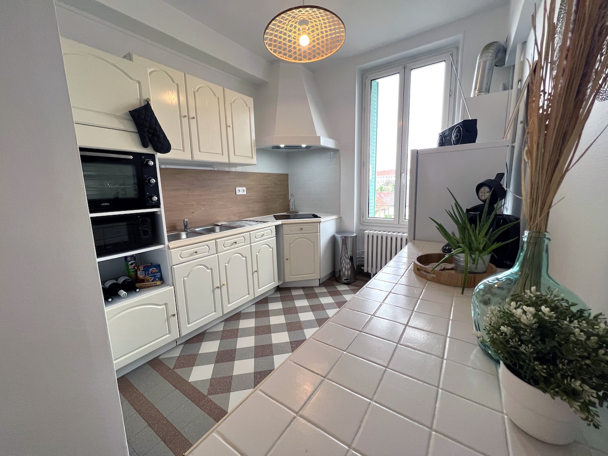 Затишна квартира на першому поверсі, тиха та світла, розташована в тихому районі Віктор Гюго, ідеально підходить для ділового або туристичного перебування, в 5 хвилинах від історичного центру Неверу. Телевізор у вітальні ТА телевізор (32 дюйми) у спальні. Бонус: безкоштовний аперитив у ресторані La Nouvelle Table за 2 км (за наявності). Квартира зі зручною постільною білизною та середовищем, що сприяє відпочинку. Цілодобове самостійне заселення за допомогою безпечного доступу з кодом, надісланим у день заселення.