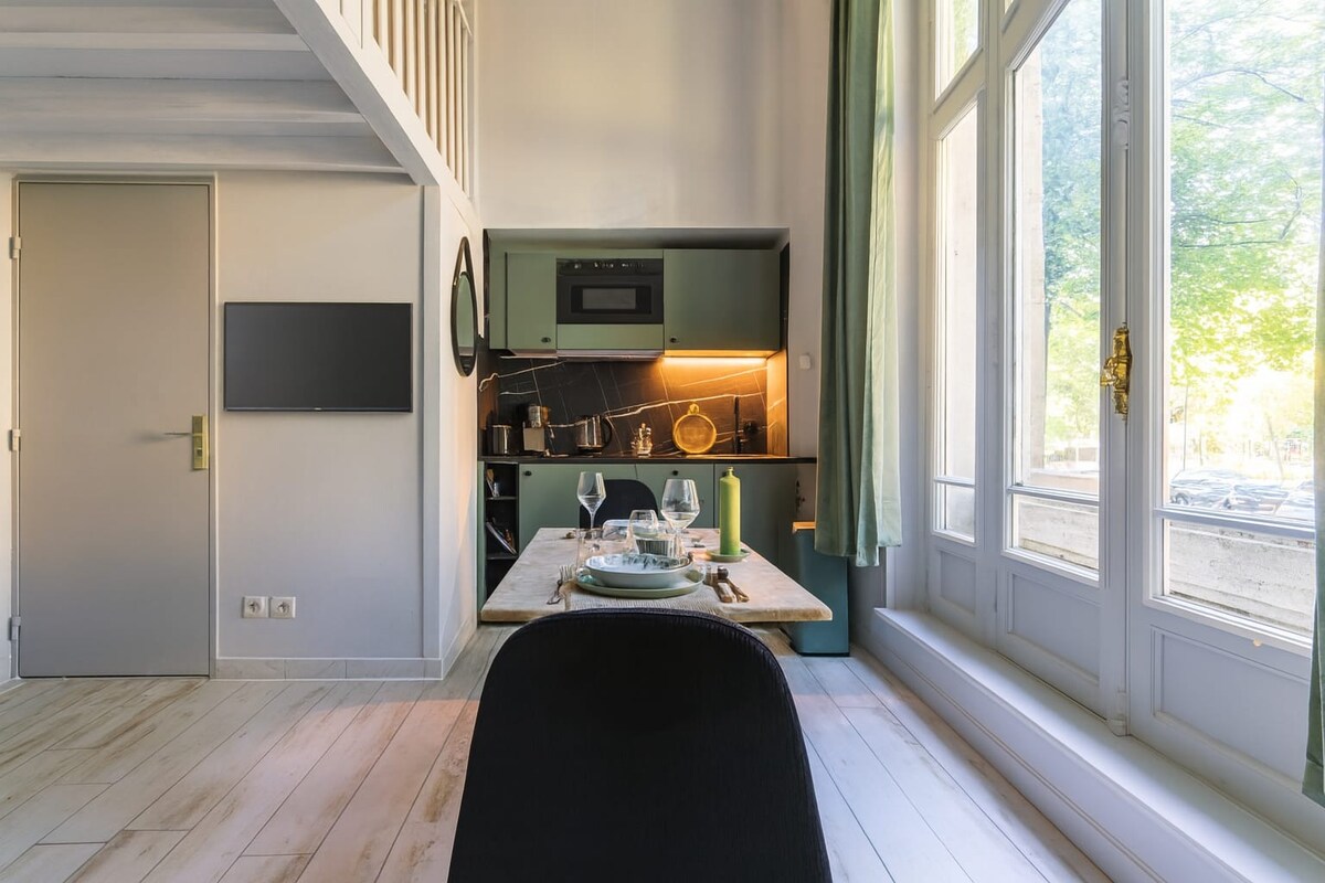 Відпочиньте в цьому тихому та стильному помешканні. Помешкання ідеально розташоване в центрі міста Ретел, недалеко від всіх магазинів ( пекарня, м 'ясорубка, продуктовий магазин, аптека... ) та за 300 м від залізничного вокзалу. 30 хвилин від Реймса та Шарлевіля-Мезєра та 2 години від Парижа!!