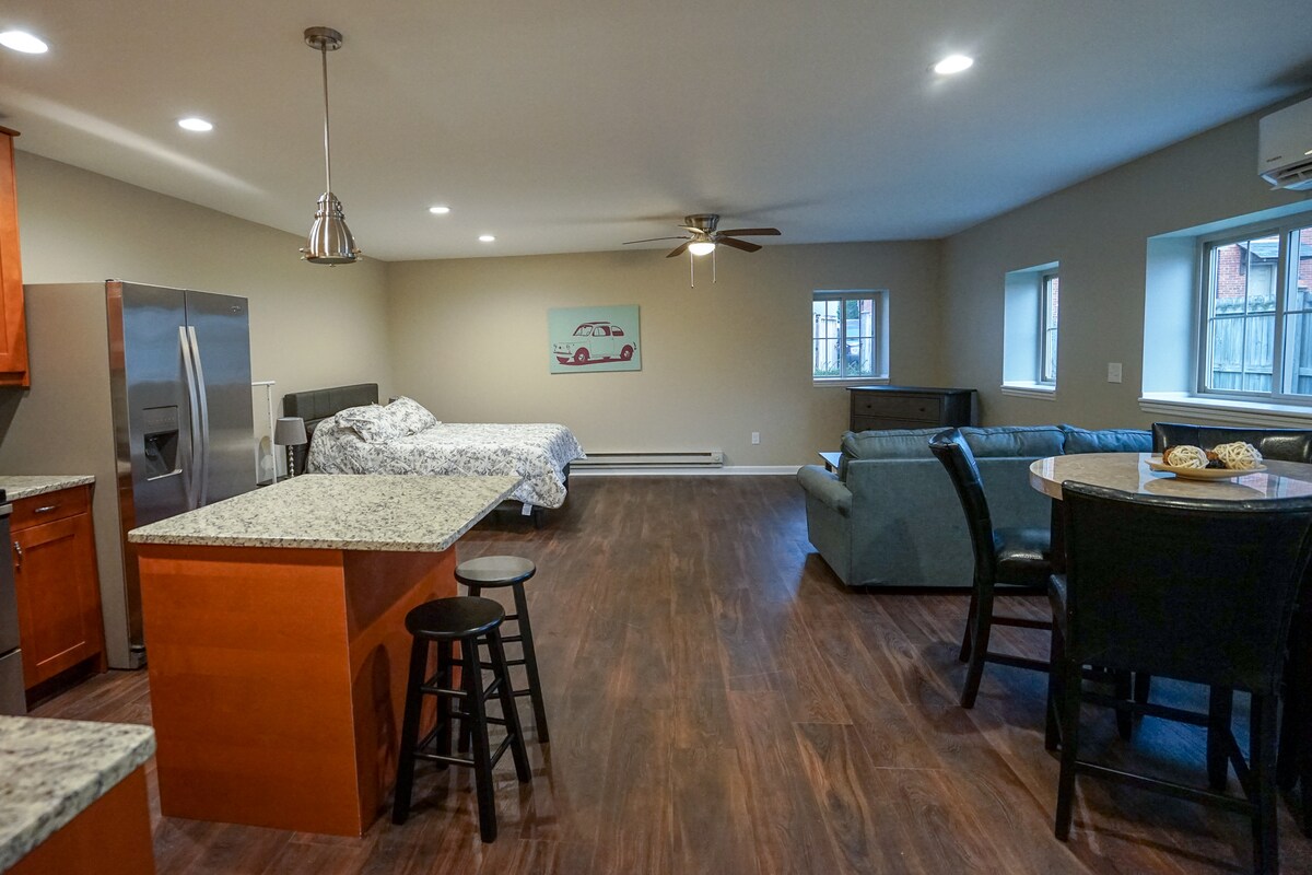 Просторий, окремий гостьовий будинок з абсолютно новим інтер 'єром у стилі лофт у центрі Шорт-Норт та Італійського селища. Світлий простір площею 700 кв. футів з окремим входом та спеціальним місцем для паркування на вулиці. Багато місць для сидіння між островом, столом і диваном. Повнорозмірна кухня для триваліших бронювань. Легкий доступ до громадського транспорту, хоча більшість гостей знаходяться в районі, де можна дістатися пішки. Господар живе поблизу і зробить усе можливе, щоб ваше перебування було максимально приємним.