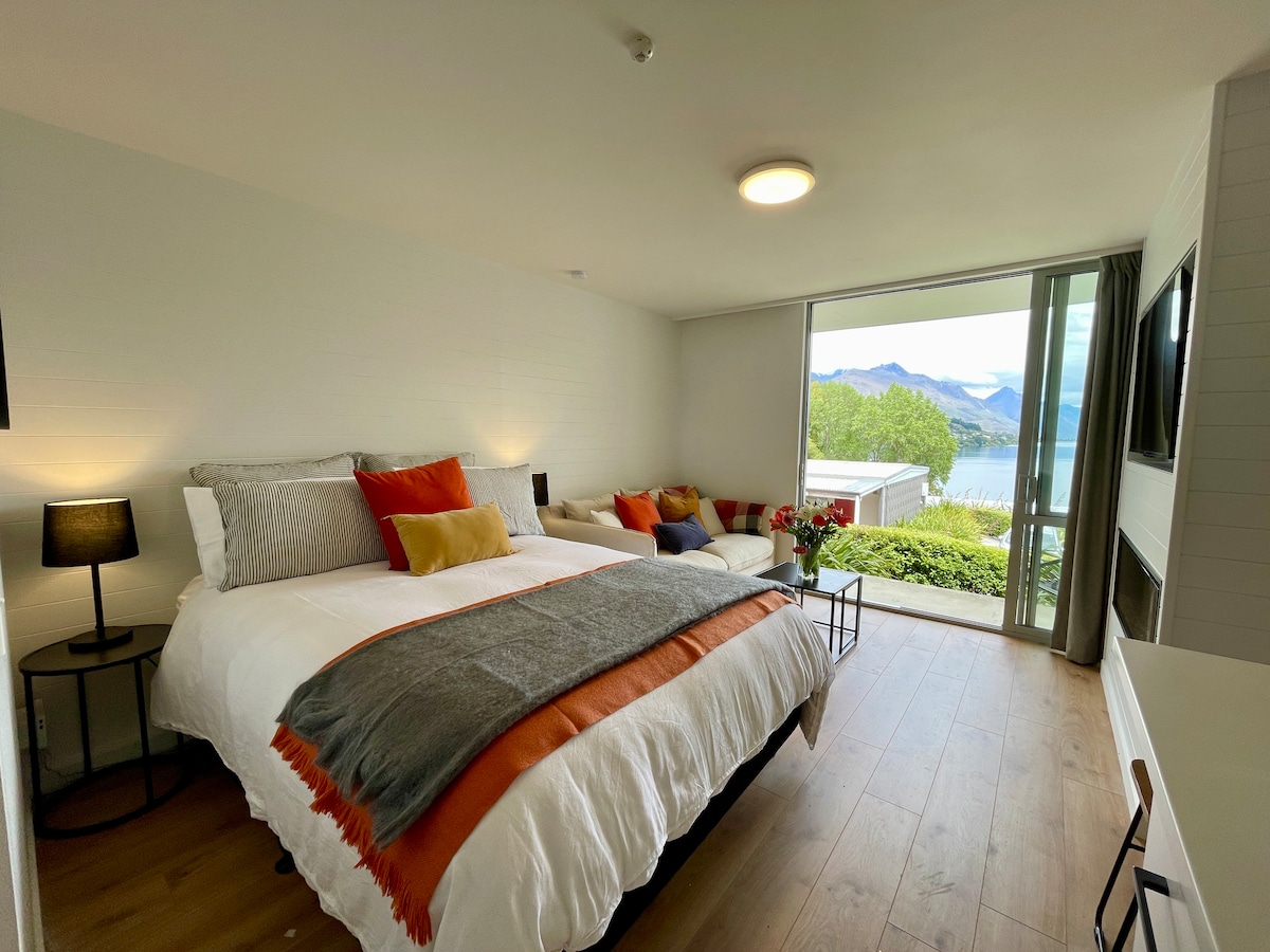Tranquil lakefront studio room with the sound of the lake and local birds. The studio is private, quiet and has a covered balcony, giving spectacular 270-degree views of Lake Wakatipu and The Remarkables mountain range. It's a 7-minute drive (or bus ride) to downtown Queenstown or a 45-minute walk along the lakeside walking and cycling track. 10 minute drive to the airport. On the main bus route for downtown and the pickup point for the ski fields. Fast WiFi with full access Netflix & Apple TV+