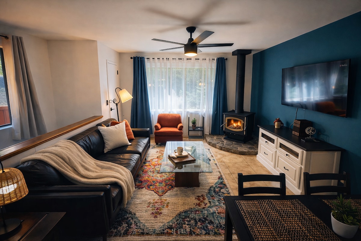 Escape to Sunshine Cabin, a cozy 3-bedroom retreat nestled in Pine Mountain Club. Surrounded by forest views and natural light, the home features warm wood interiors, a wood-burning stove, central A/C, and stylish touches. Step onto the deck for morning coffee, or hit the hiking trails just outside your door. Whether you crave mountain adventure or quiet serenity, this cabin is your perfect getaway.