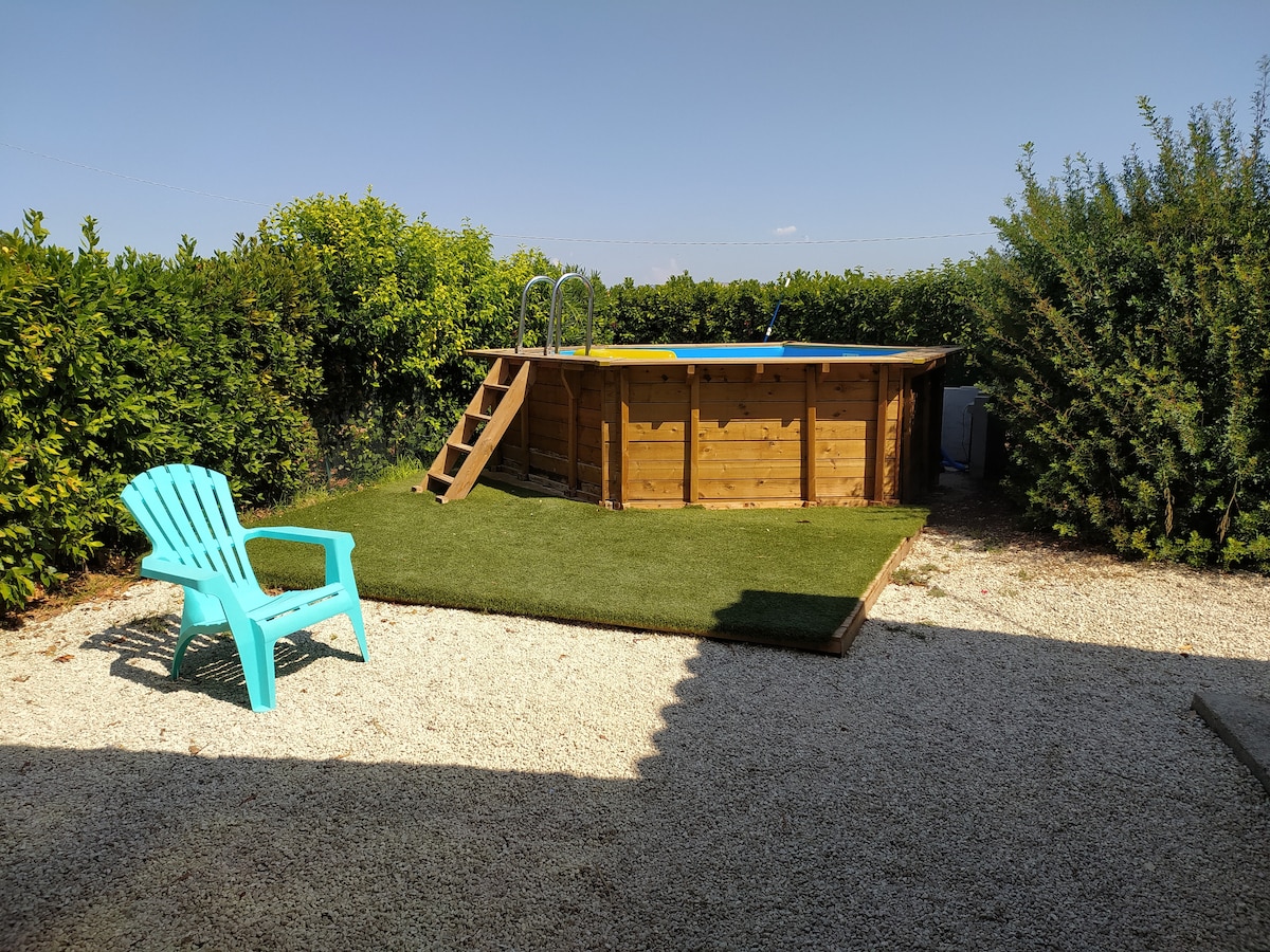 Casa in legno e muratura con affaccio su un agrumeto, con una bella piscina, situata in una posizione comodissima a tre km dal centro di Noto, sulla strada dalla quale si raggiungono le spiagge della Riserva Naturale di Vendicari i. Casa con 2 camere da letto, 2 bagni, cucina con sala pranzo, zona TV con divano, terrazza privata attrezzata con tavolo, sedie e zona salotto, aria condizionata, Wi-Fi, Tv satellitare, lavastoviglie. Lavatrice in comune con altra casa.