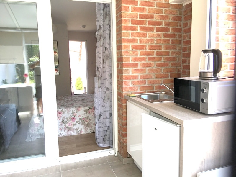 Замок 2Bis Facing Morbecque Michel вітає вас до цілого яскравого помешкання, окремого входу, веранди, тераси, саду. Wi-Fi та оптоволоконний телевізор. Доступ до Netflix. Ідеально підходить для віддаленої роботи У добре обладнаній кімнаті є справжнє двоспальне ліжко, ванна кімната, італійський душ. Веранда обладнана BZ, кухонною раковиною,холодильником, мікрохвильовою піччю та духовкою, кавоваркою, їдальнею. Плюс окрема обладнана міні-кухня. Закрита стоянка. Сейф для ключів.