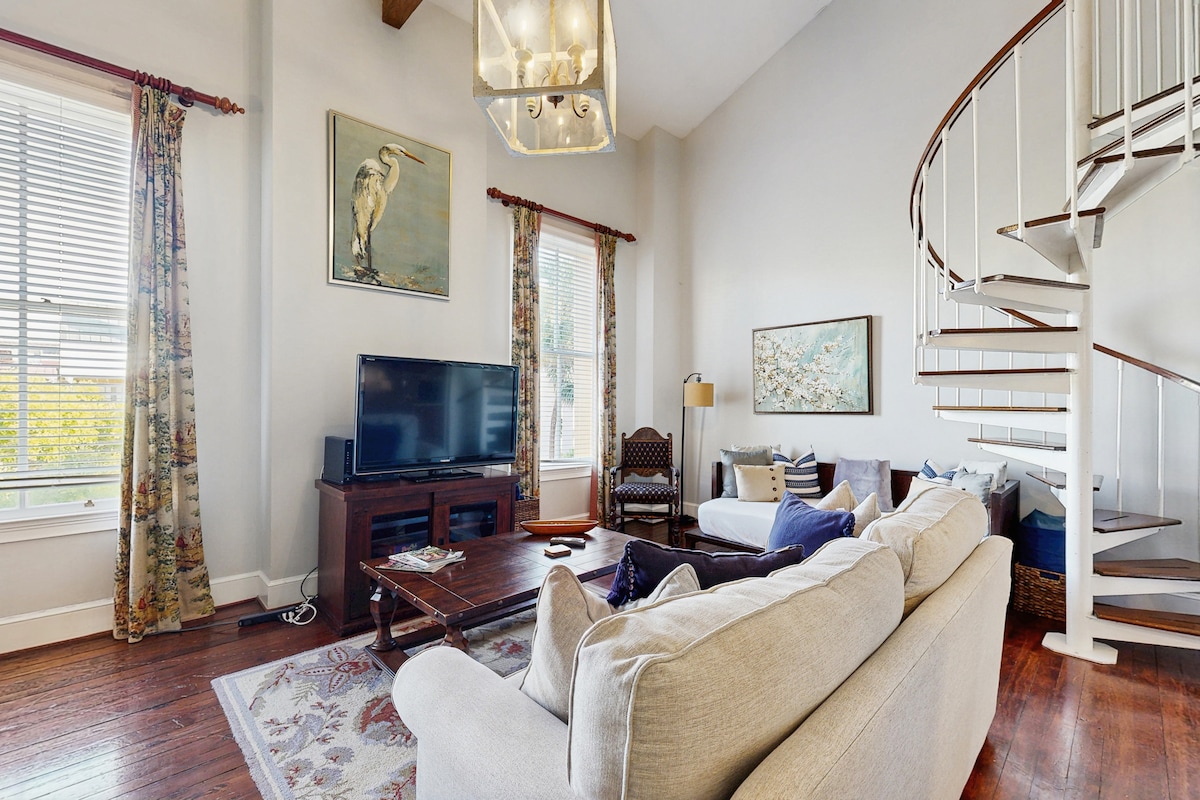 Ця відремонтована квартира – це місце, де ви захочете зупинитися під час наступної подорожі до Чарльстона. Відпочинок на вихідних, пробіжка на мосту, сполето, весняні/осінні екскурсії або навіть перебування! Кондомініум у стилі лофт з однією спальнею та просторим вітальнею, їдальнею, кухнею та ванною, розташованою внизу. Розслабтеся в цьому тихому кутовому блоці! Вийдіть на вулицю, і місто біля ваших ніг! Перегляньте помешкання для наших сестер! https://www.airbnb.com/rooms/20436304