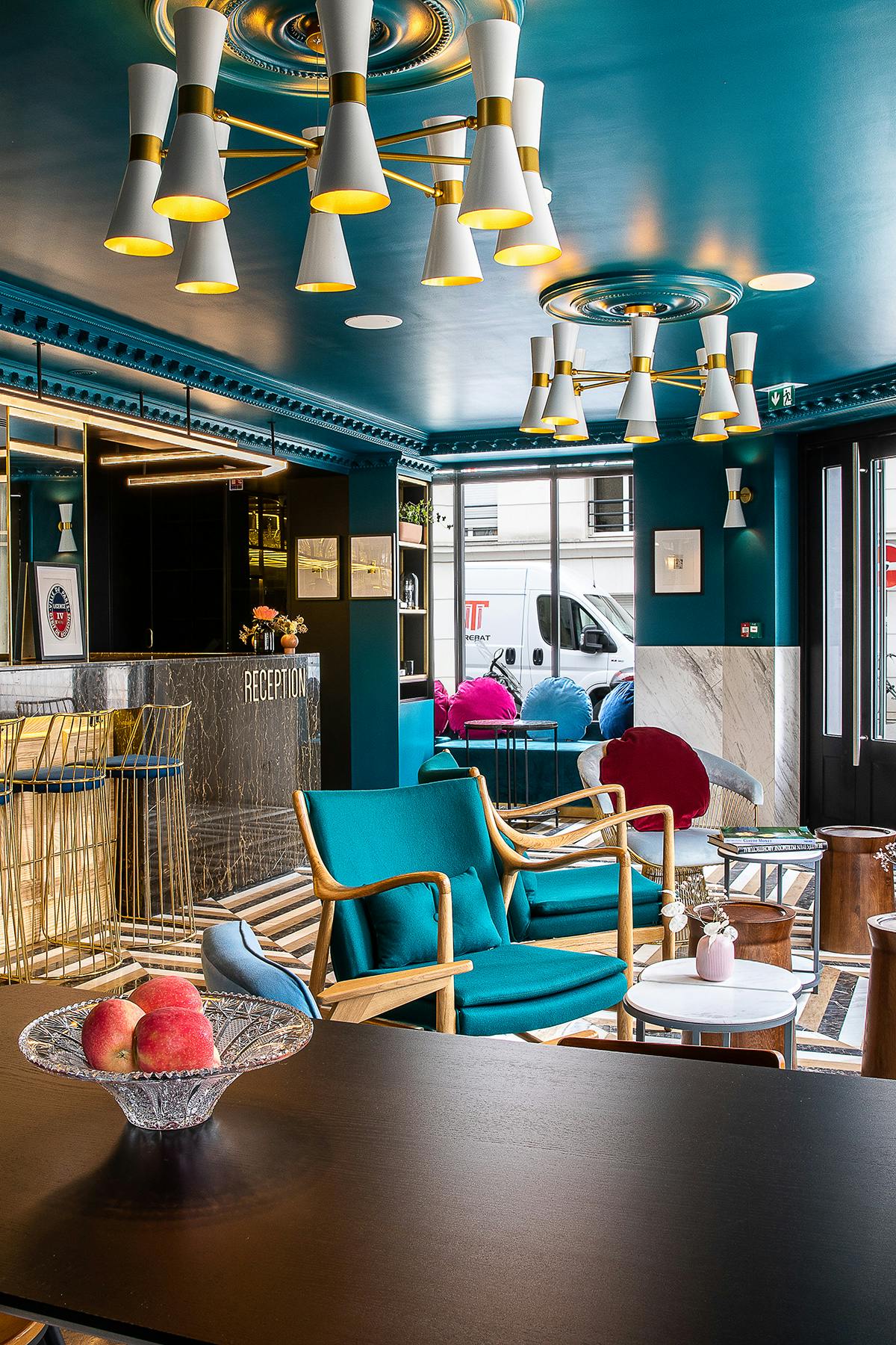 - Dangerously close to upscale shopping at Printemps and Galeries Lafayette, and just a few stiletto clicks from the Opera. - Grand 1920s entryway, all marble and mirrors and Art Nouveau under a quintessentially Parisian glass dome, has serious wow factor. - Decor is elegant, staff are friendly, WiFi is free.